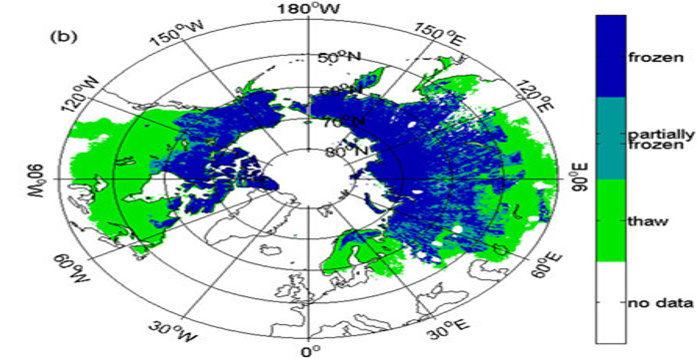 L'état gelé/non gelé du sol est un paramètre essentiel des modèles d'émission de méthane par les sols arctiques.