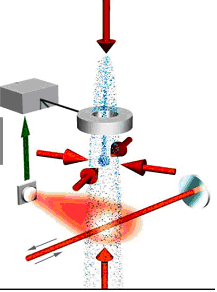 Il a fallu en particulier abriter les atomes derrière un blindage magnétique, abaisser la pression du gaz jusqu’à l’ultra vide pour éviter les collisions, et plus difficile encore, ralentir au maximum les atomes. Pour cela, la lumière laser a été utilisée afin de refroidir les atomes jusqu’à une température proche du zéro absolu . Le temps d’interrogation des atomes dans la cavité a pu alors augmenter d'au moins deux ordres de grandeur.