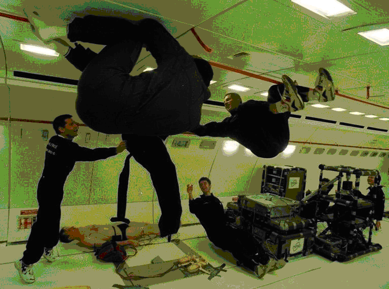 C’est ainsi qu’en 1993 le CNES parraine ce projet d’horloge spatiale. L’avion en vol parabolique opéré par Novespace pour le compte du CNES était tout désigné pour effectuer les essais de conception préliminaires.