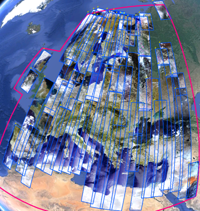 Le CNES a défini les produits Sentinel-2 jusqu'au niveau 1C et préconisé le contenu des produits de niveau 2 disponibles aujourd'hui, avec fourniture de réflectances (certains demandaient la luminance) découpées en tuiles de 110 km, avec un recouvrement de 10 km. C'est également le CNES qui a proposé d'utiliser la grille de tuiles MGRS pour avoir le même échantillonnage des données à chaque utilisation et faciliter l'utilisation de séries temporelles d'images, comme on le voit sur la séquence du détroit de Gibraltar (ci-dessous). Le CNES a fourni les spécifications des chaines de traitement jusqu'au niveau 1C (corrections radiométrique, étalonnage, corrections géométriques), montré qu'il était possible de faire un affinage de la superposition des données en temps réel, et défini toutes les méthodes de validation de l'étalonnage radiométrique.