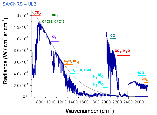 Grâce à l’analyse des spectrogrammes fournis par l'instrument IASI de nombreux constituants minoritaires de l'atmosphère ont été identifiés comme
