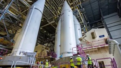 Il s’agit d’une installation essentielle pour accompagner la montée en cadence rapide d’Ariane 6 après le vol inaugural prévu cet été. Le bâtiment de stockage des boosters (BSB) viendra compléter durant l’année 2024 les infrastructures sol de l’ELA-4. Le BSB est un hangar technique dans lequel les propulseurs seront entreposés après leur préparation, en attendant d’être transportés sur la zone de lancement et intégrés sur le corps central du lanceur. Le bâtiment, de grande dimension (60 m de long, 28 m de large, 32 m de haut), pourra stocker jusqu’à 12 boosters en même temps, répartis en 2 rangées de part et d’autre du hangar. Ce seront principalement les ESR d’Ariane 6, mais deux emplacements pourront également accueillir les propulseurs A1A du lanceur Vega C. Les boosters seront transportés par un fardier qui pénétrera à l’intérieur du bâtiment et les déposera sur leur poste de stockage.