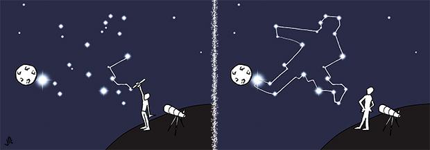 La nuit tombe et les 1eres étoiles apparaissent… 1, 100, 1 000…. En réalité, il y en a 200 000 000 000 dans notre galaxie, la Voie lactée. Mais à quelle distance se trouvent-elles ? Difficile à dire. D’ailleurs, pendant des siècles, la question a fait débat et ce n’est qu’en 1838 que l’astronome allemand Friedrich Bessel a calculé la 1ere distance d’étoile en utilisant la parallaxe (1). Il estime alors que l’étoile 61 de la constellation du Cygne se trouve à 100 000 milliards de km de la Terre ou 10,4 années-lumière (la valeur réelle est 11,2).