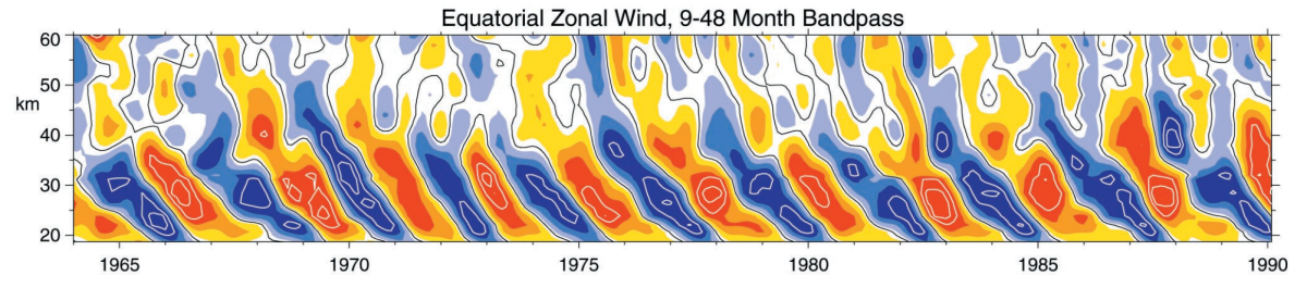 Etudier des planètes différentes de la Terre est aussi l’occasion d’en apprendre davantage sur notre propre planète. A 30 km d’altitude au-dessus de nos têtes dans la stratosphère (entre 20 et 50km), la dynamique est très différente de ce que nous pouvons percevoir au sol : deux vents superposés se déplacent dans le sens opposés, provoquant une alternance entre vent d’est et vent d’ouest tous les 26 mois.