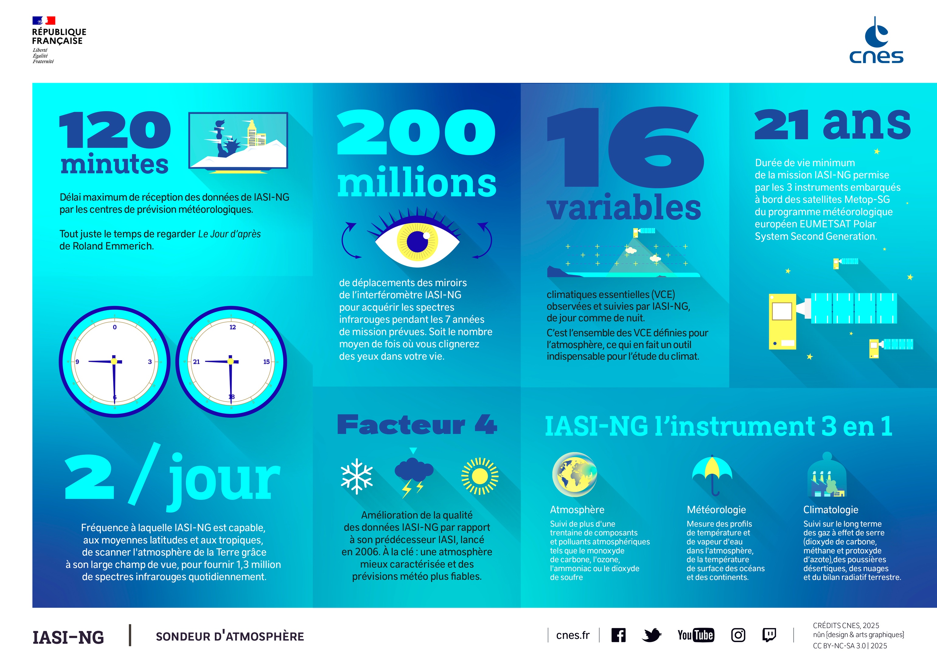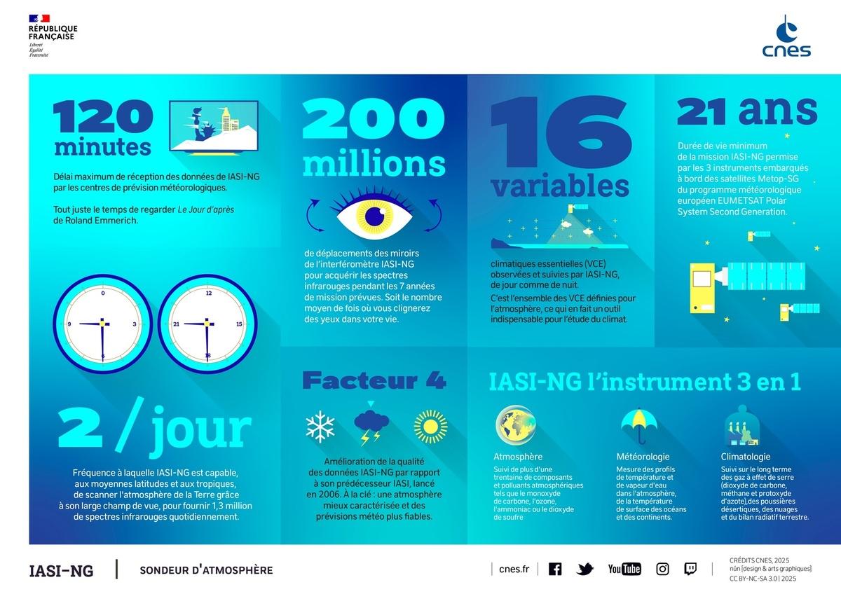 Cette attente doit prendre fin ce mois d’août avec le lancement sur Ariane 6 du satellite européen de seconde génération Metop-SG, embarquant IASI-NG (Interféromètre Atmosphérique pour le Sondage Infrarouge – Nouvelle Génération), l’héritier de IASI. Il observera les mêmes paramètres et composantes de l’atmosphère, mais… en mieux !