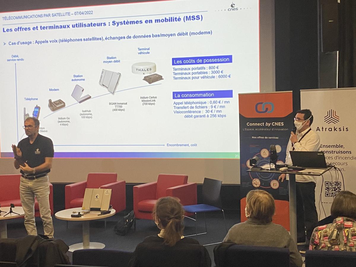 La journée, organisée par Connect by CNES avec l’association Atraksis et le pôle Nouvelles technologies de l’Entente Valabre, a accueilli de nombreux participants, familiers de l’usage des solutions satellitaires pour le secours, mais aussi ceux plus éloignés de telles pratiques.