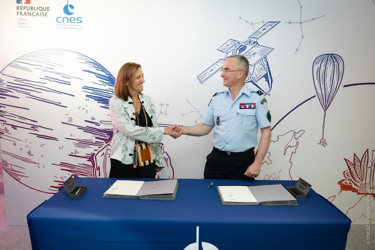 Signature du contrat entre le CNES et la BSPP au Salon du Bourget. © CNES/PEUS Christophe, 2025