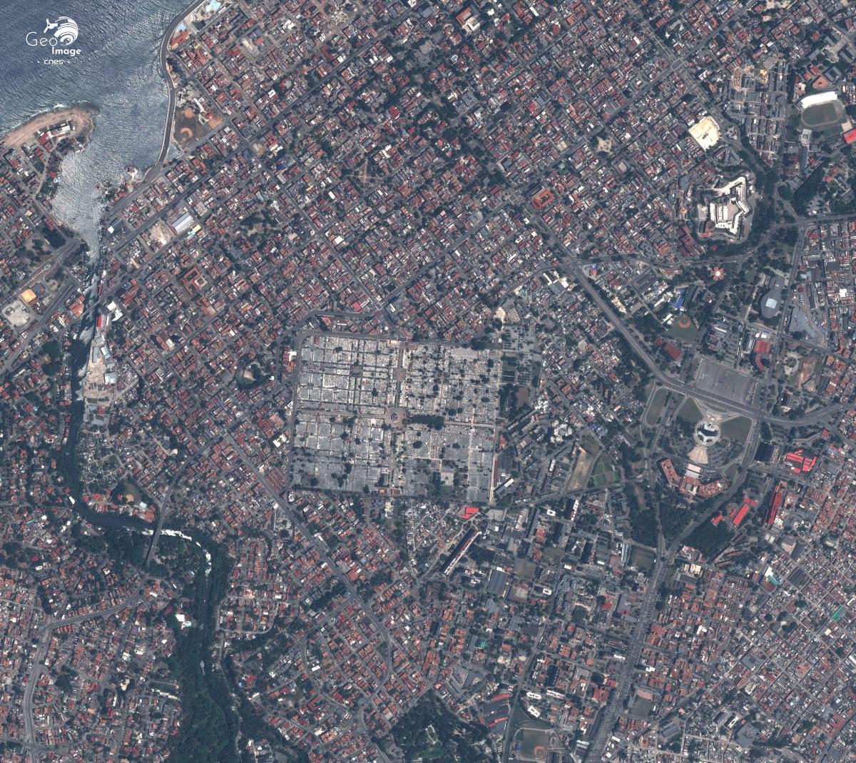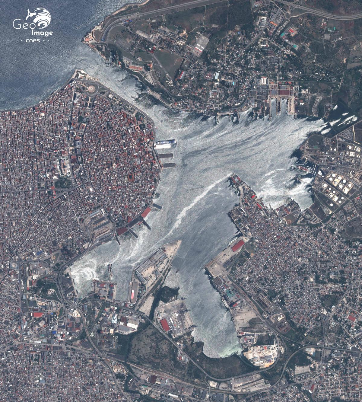 Cette image de la Havane, capitale de Cuba, a été prise par un satellite Pléiades le 1 mai 2018. Il s’agit d’une image en couleur naturelle, de résolution native à 0,70m, ré-échantillonnée à 0,5m.
