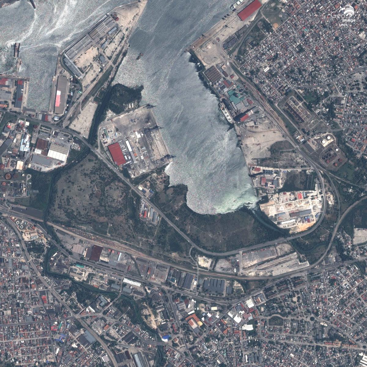 Le gouvernement cubain a réaménagé le port de Mariel, à une quarantaine de kilomètres à l’ouest de La Havane pour y accueillir des porte-conteneurs « post-panamax ». Celui-ci est bien relié à la capitale par une autoroute et une ligne de chemin de fer, toutes deux visibles à l’ouest, sur le cliché (l’autoroute au nord, le chemin de fer au sud, séparés par un petit lac). Le port de Mariel présente une zone franche - ZED : Zona Especial de Desarrollo - destinée à accueillir des entreprises étrangères, ce qui constituait une nouveauté à Cuba au moment de son lancement en 2014. Cela devrait permettre de maintenir La Havane dans la concurrence que se livrent les différents ports de la région des Caraïbes et du monde entier, devant accueillir des navires toujours plus grands et traiter les marchandises dans des temps les plus courts possible. Toutefois, son importance reste très limitée aujourd’hui.