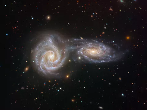 2 galaxies spirales situées à 130 millions d’années-lumière © ESO/Juan Carlos Muñoz