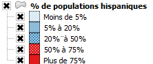 Légendes pour les documents 3A et 3B : % des populations hispaniques :