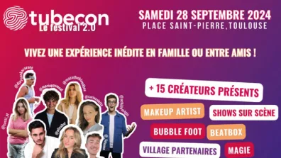 Le festival Tubecon 2024 se tiendra cette année place Saint-Pierre, à Toulouse, le 28 septembre de 10h à 18h. Nous sommes partenaire du rendez-vous qui réunit les influenceurs et leurs communautés et qui propose toujours différents formats d'événements autour de l'influence.