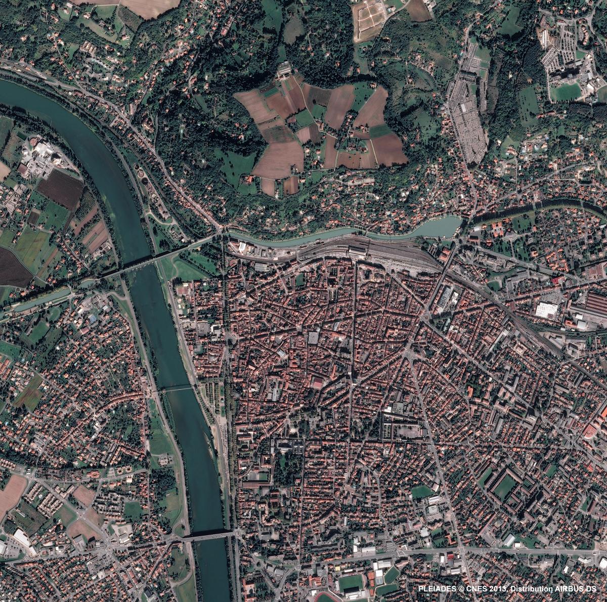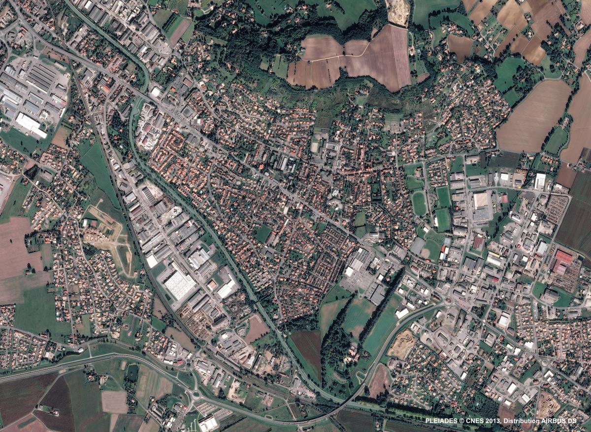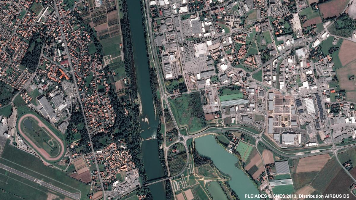 Cette image provient du satellite Pléiades, elle a été prise le vendredi‎ ‎8‎ ‎novembre‎ ‎2013. Il s’agit d’une image en couleurs naturelles, de résolution native à 0,70m, ré-échantillonnée à 0,5m.