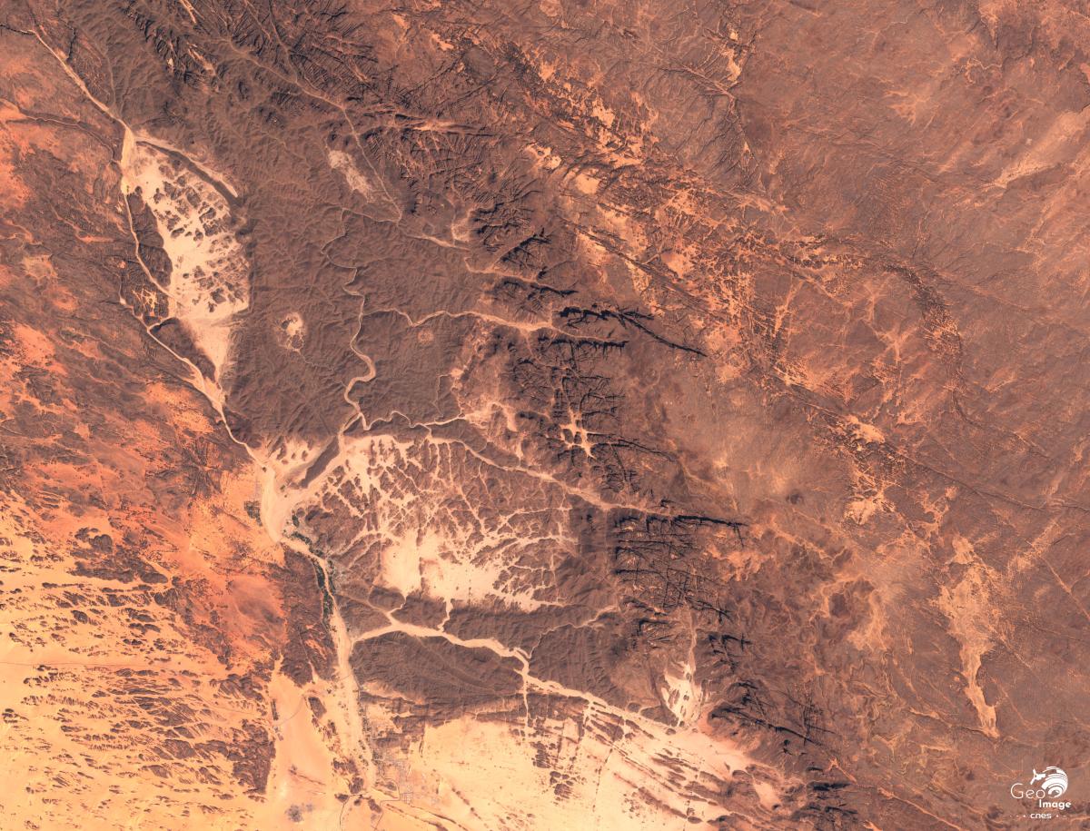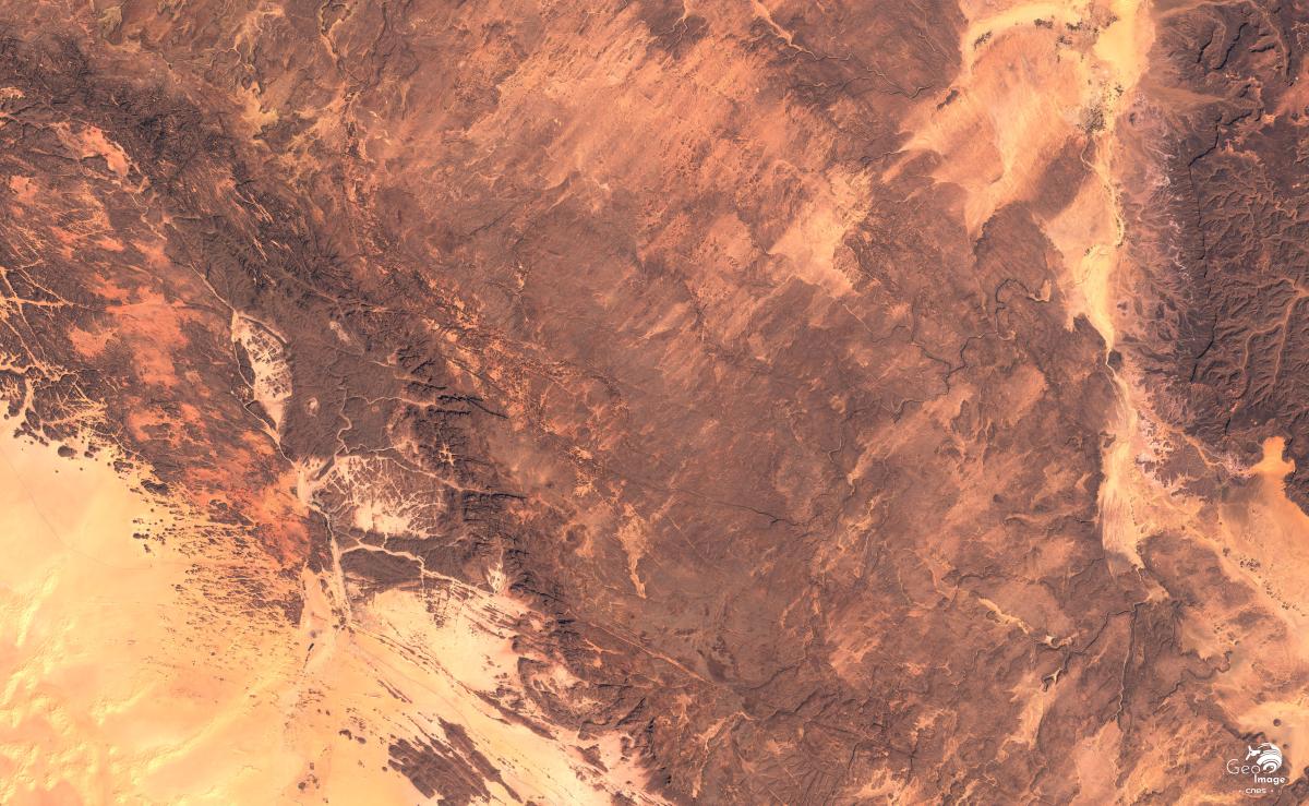 Image satellite du sud-est du Sahara algérien, à la frontière avec la Libye