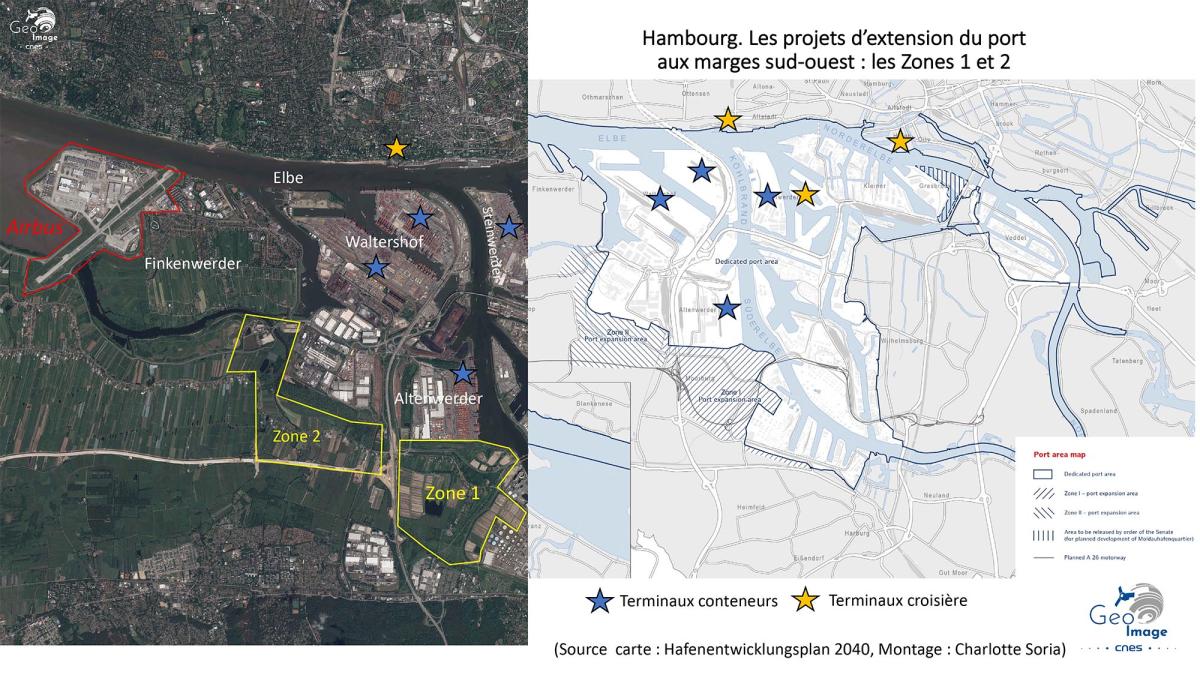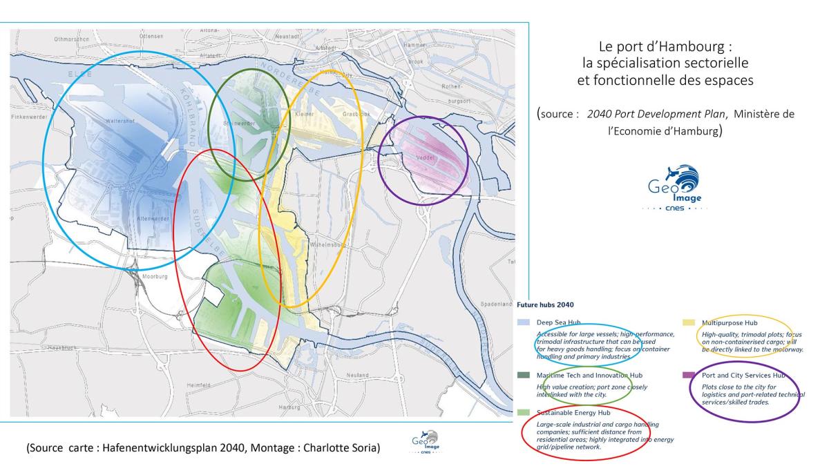 Avec ses 4 terminaux à conteneurs, Hambourg est aujourd’hui le 20ème port mondial de cette branche stratégique des transports mondiaux, mais en recul de deux places depuis 2014. Il est relié à plus de 1 000 ports dans plus de 170 pays par des routes maritimes. Le territoire portuaire s’étend sur 7.236 hectares – soit 10 % de la surface de la ville-Land de Hambourg - dont 3.414 hectares situés au cœur de la ville. Hambourg semble ainsi dominée au premier coup d’œil par les emprises portuaires qui ressortent des images satellites et qui restent encore maintenant au cœur de l’espace urbain. Une particularité qui s’explique par des raisons historiques mais aussi des choix d’aménagement.
