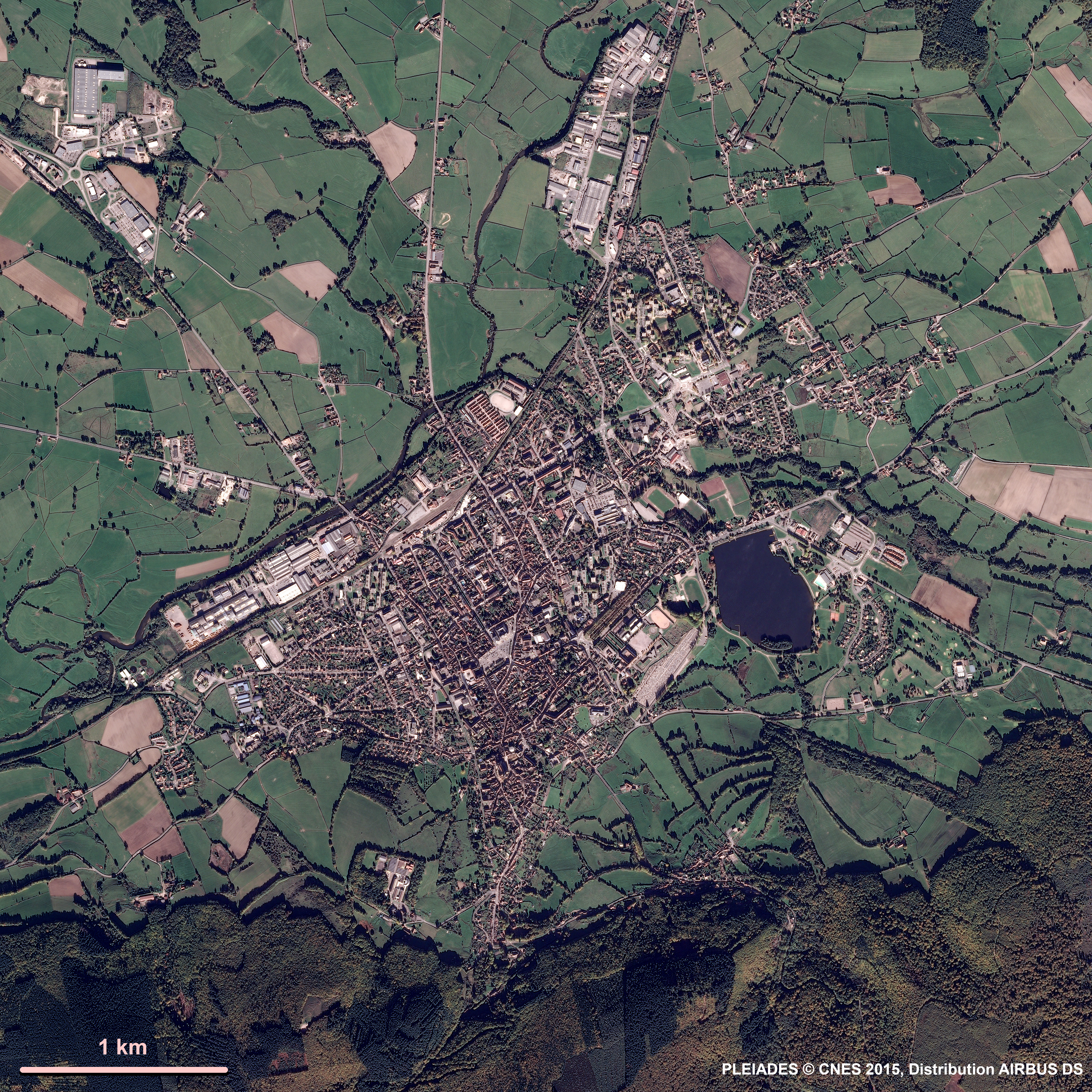 Cette image a été prise par un satellite Pléiades le 19/10/2015. Il s’agit d’une image en couleurs naturelles, de résolution native à 0,70m, ré-échantillonnée à 0,5m