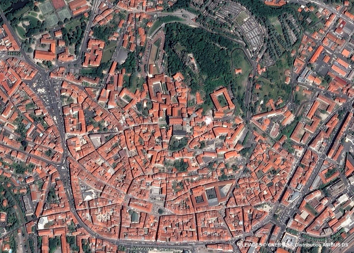 Cette image a été prise par un satellite Pléiades le 24/06/2015. Il s’agit d’une image en couleurs naturelles, de résolution native à 0,70m, ré-échantillonnée à 0,5m.