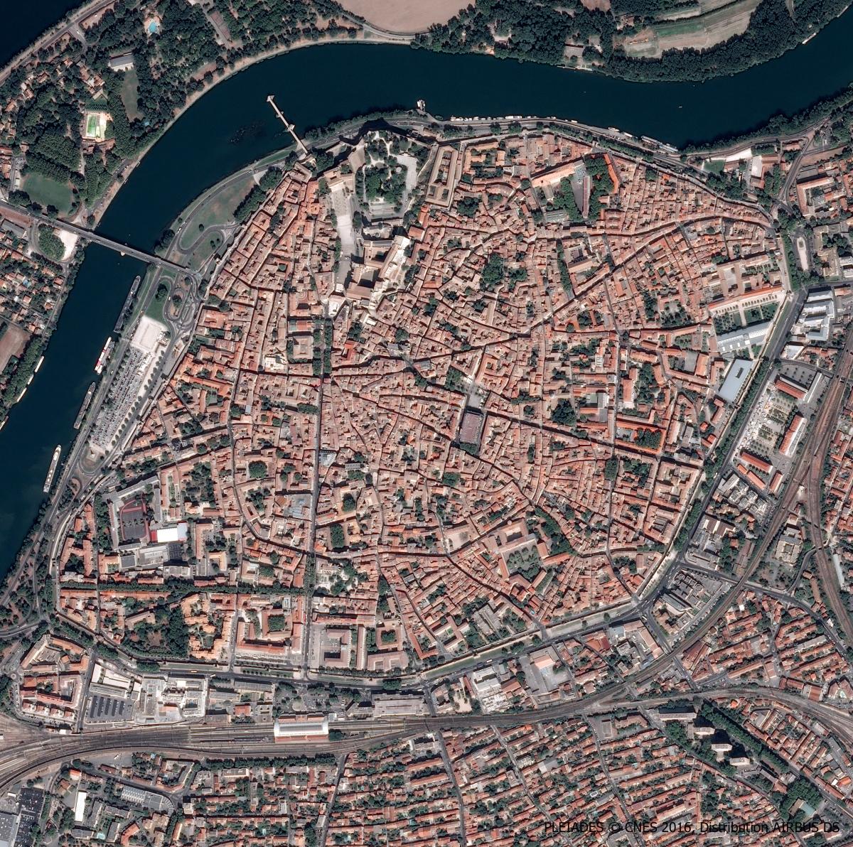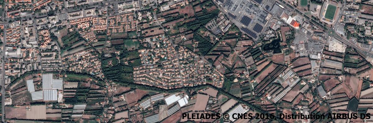 Cette image a été prise par un satellite Pléiades le 10/09/2016. Il s’agit d’une image en couleurs naturelles, de résolution native à 0,70m, ré-échantillonnée à 0,5m.