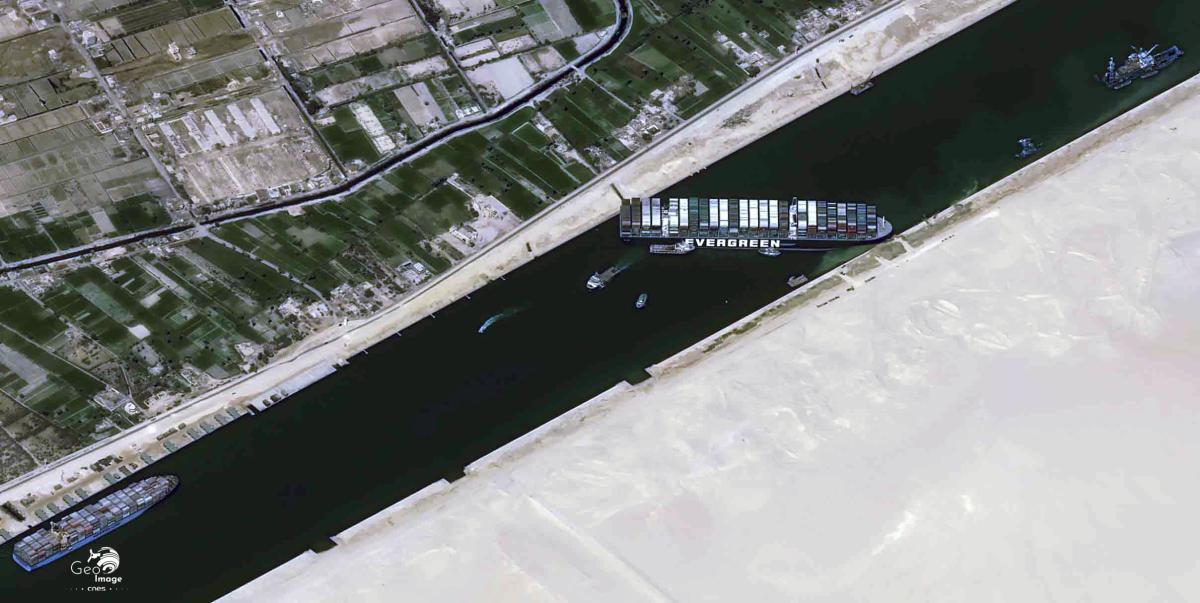 Les différentes images satellites qui rendent compte du blocage de l’Ever Given permettent de comprendre comment le Canal de Suez est devenu un « point chaud » de la planète, révélateur à toutes les échelles des enjeux, des limites et des tensions de la mondialisation.