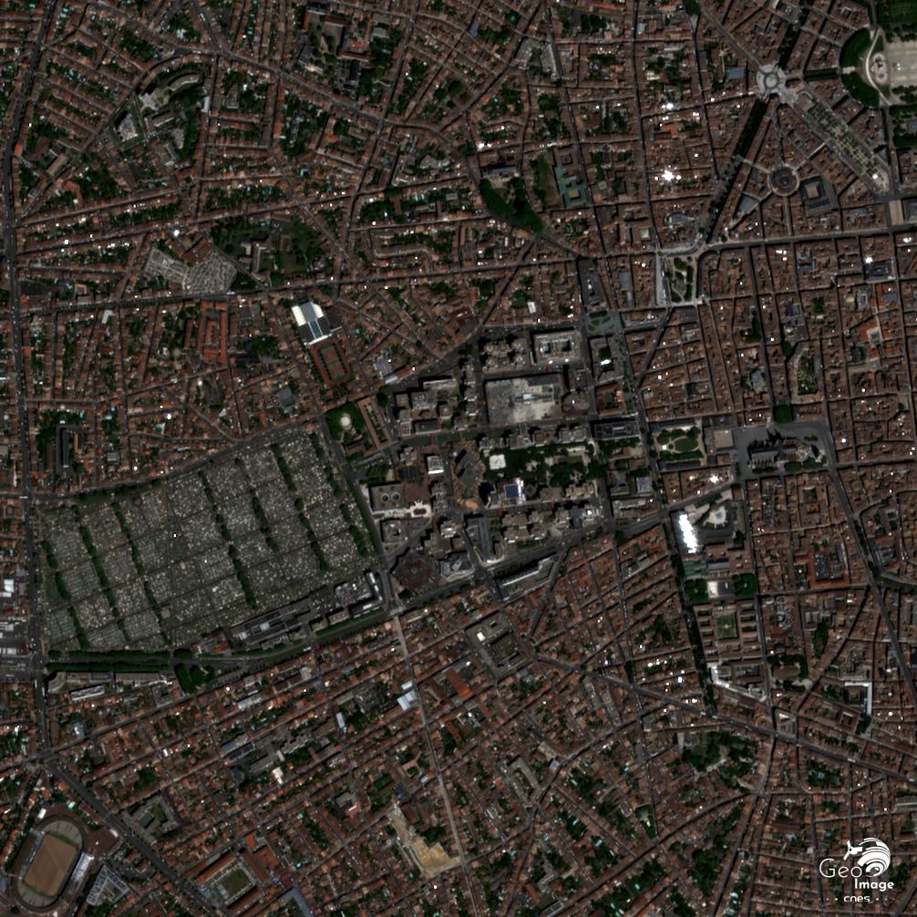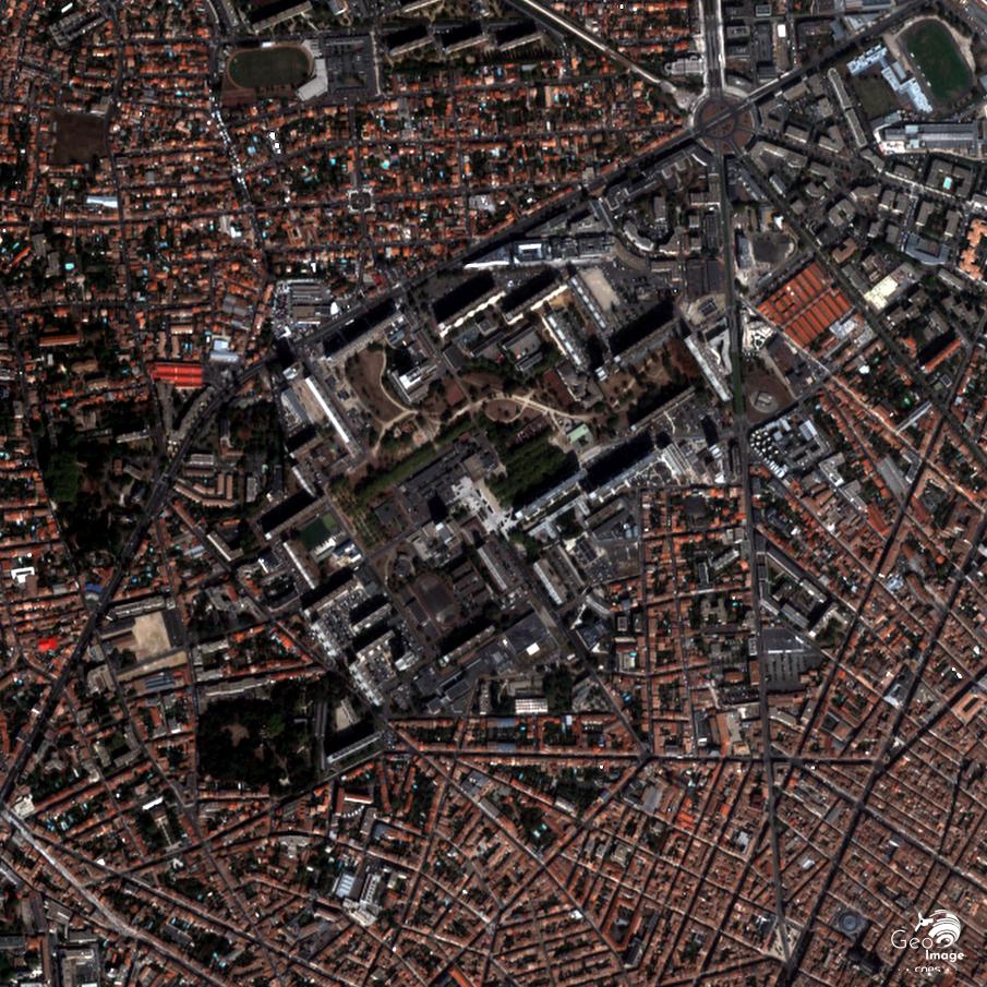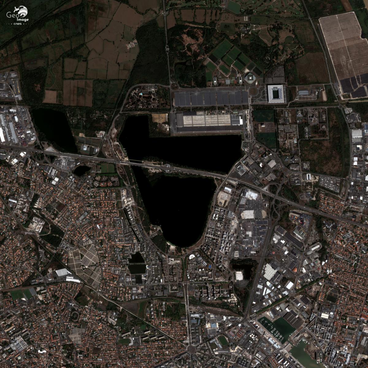Cette image a été prise par un satellite Pléiades le 16/09/2018. Il s’agit d’une image en couleurs naturelles, de résolution native à 0,70m, ré-échantillonnée à 0,5m.