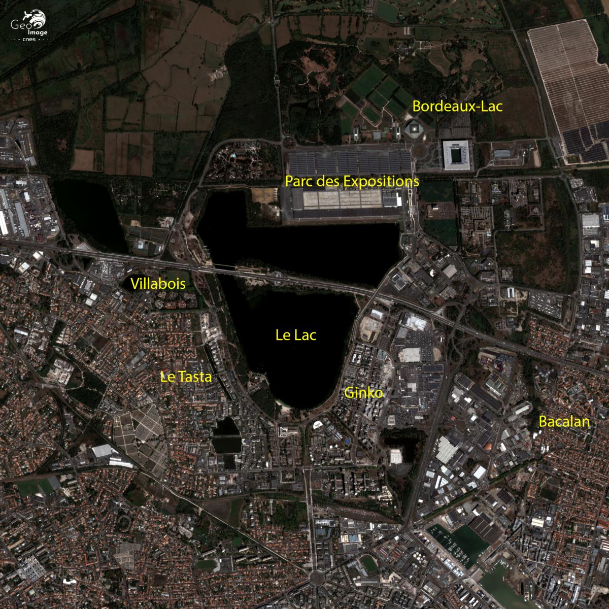 Sur la rive gauche, le vaste lac artificiel aménagé aux portes de la ville est au cœur d’un nouveau quartier sorti de terre dans les années 1960 à l’initiative de Jacques Chaban-Delmas, maire emblématique de Bordeaux de 1947 à 1995, concentrant des activités consommatrices d’espace (zone commerciale, Parc des Expositions, stade…).