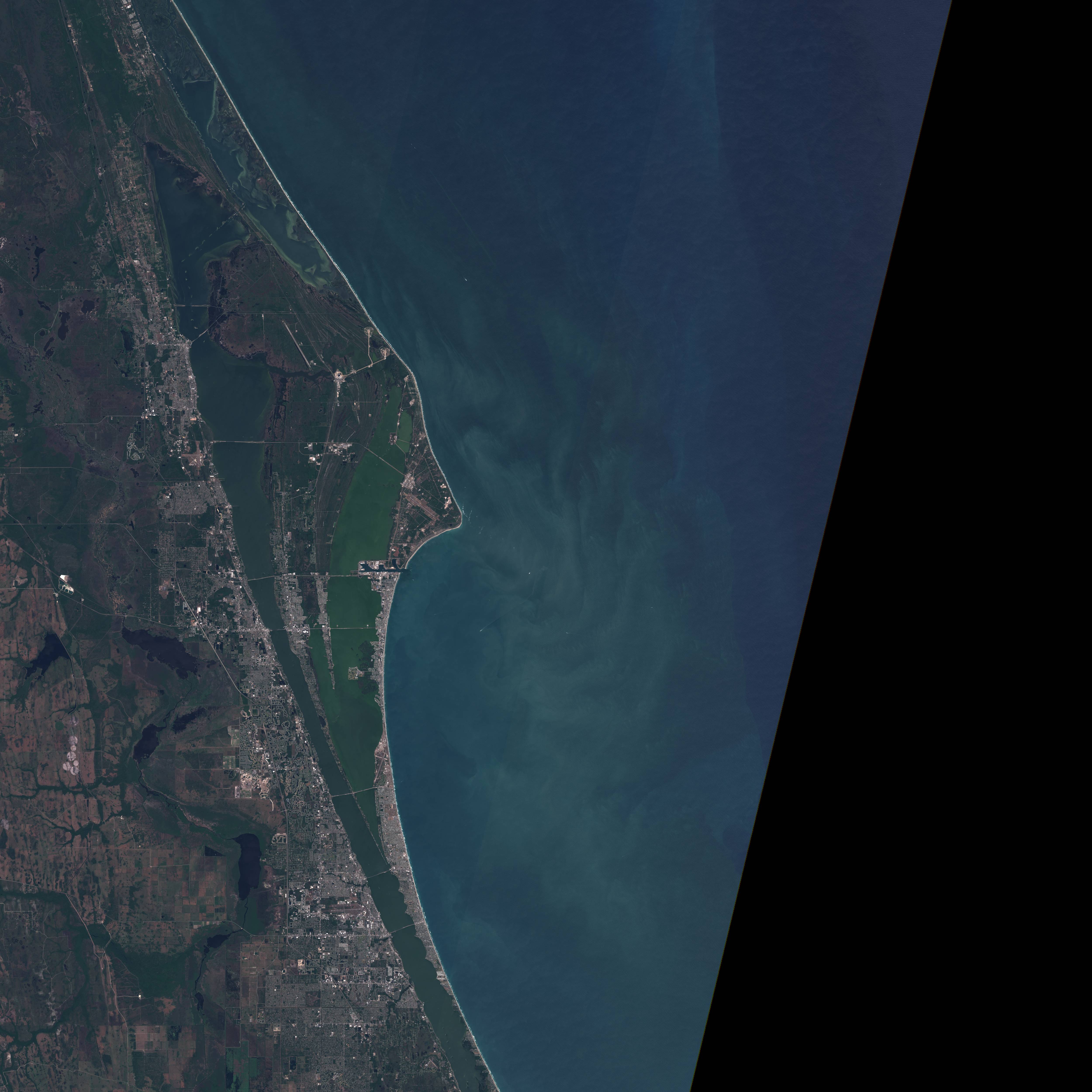 L’image prise par le satellite Sentinel-2 permet de bien mettre en évidence les différents sites de la base du Cap Canaveral. Sur l’océan Atlantique, le Cap Canaveral en lui-même regroupe les installations militaires du CCAFS : on y relève les complexes de tir 34 et 37 qui ont permis le lancement de fusées Saturn pour le programme Mercury ainsi que dans le domaine militaire le pas de tir des fusées Pershing 1 (1960/1963) dont le nom évoque à lui tout seul la course aux armements liée à la Guerre Froide.