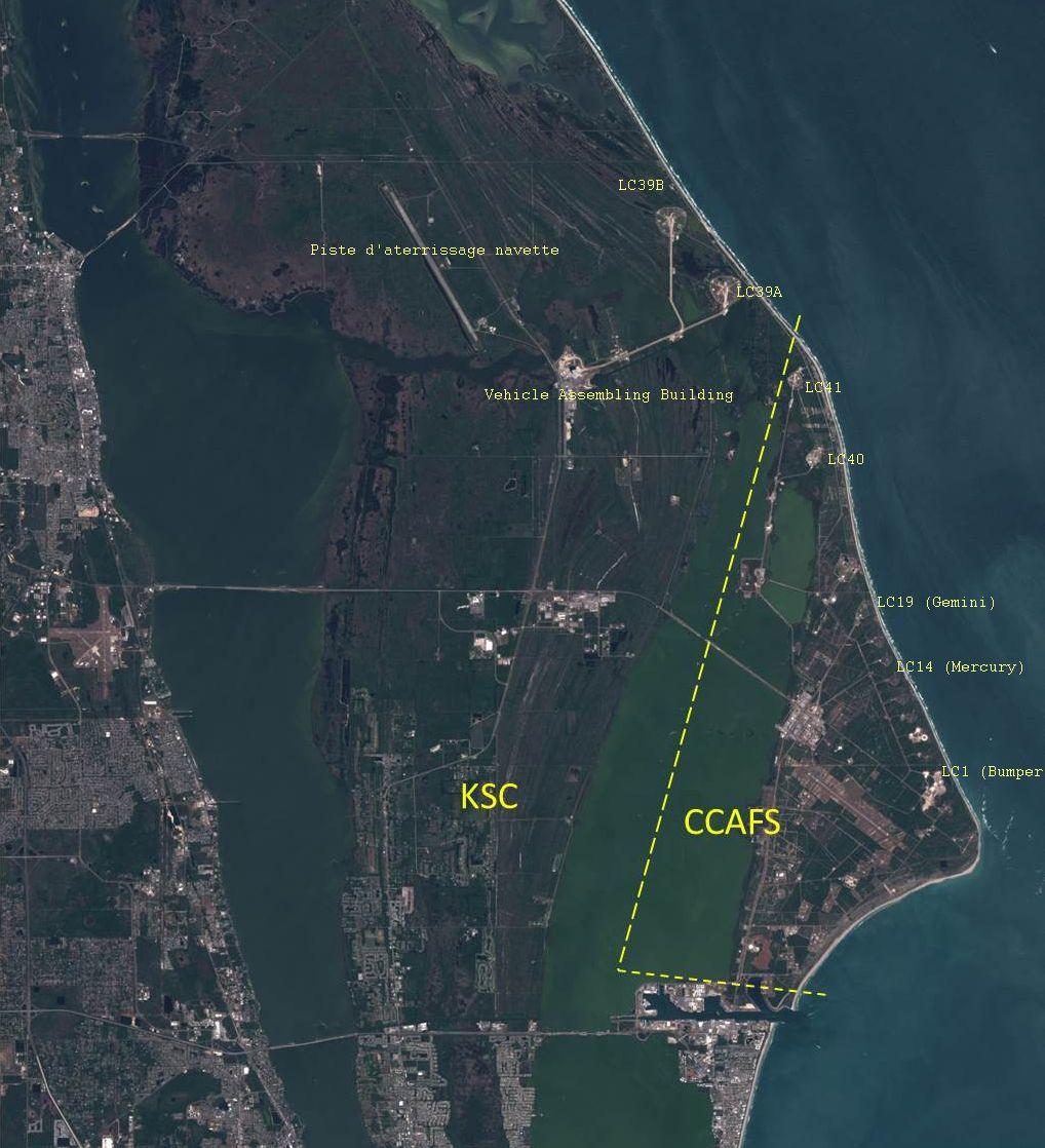 Sur la côte est de la Floride, au bout d’un cap à dominante sableuse, dans l’ancienne région occupée par les Indiens Séminoles se dressent l’un des fleurons et des témoignages les plus vivants de l’aventure spatiale humaine. Si le nom de Cape Canaveral est devenu mythique dans le domaine du spatial, cette simplification ne doit pas faire oublier que la base est en fait double. Le complexe astronautique de Cape Canaveral est en fait constitué par 2 bases aux fonctions et aux modes de gestion (Armée de l’Air et NASA) distinctes. Elles sont séparées l’une de l’autre par la Banana River.