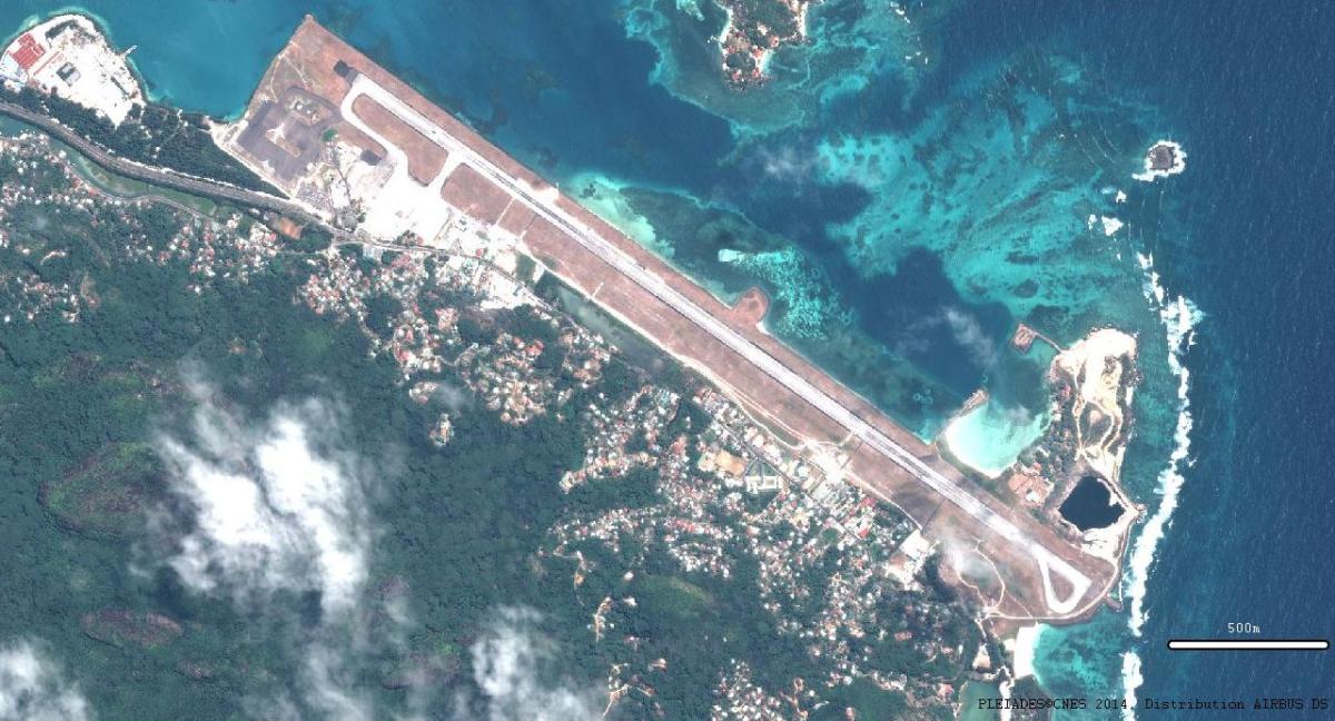 Cette image a été prise par un satellite Pléiades le 31/08/2014. Il s’agit d’une image en couleurs naturelles, de résolution native à 0,70m, ré-échantillonnée à 0,5m.