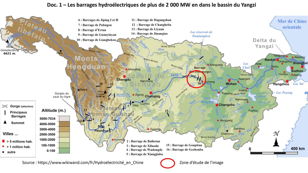 Document 1 : Les barrages dans le bassin du Yangzi :