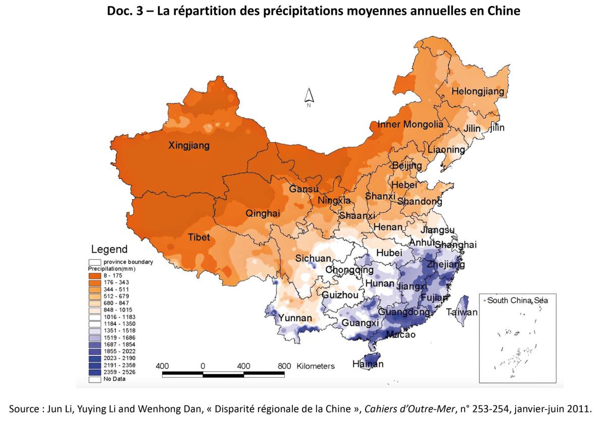 Document 3 : carte de répartition des précipitations moyennes annuelles :