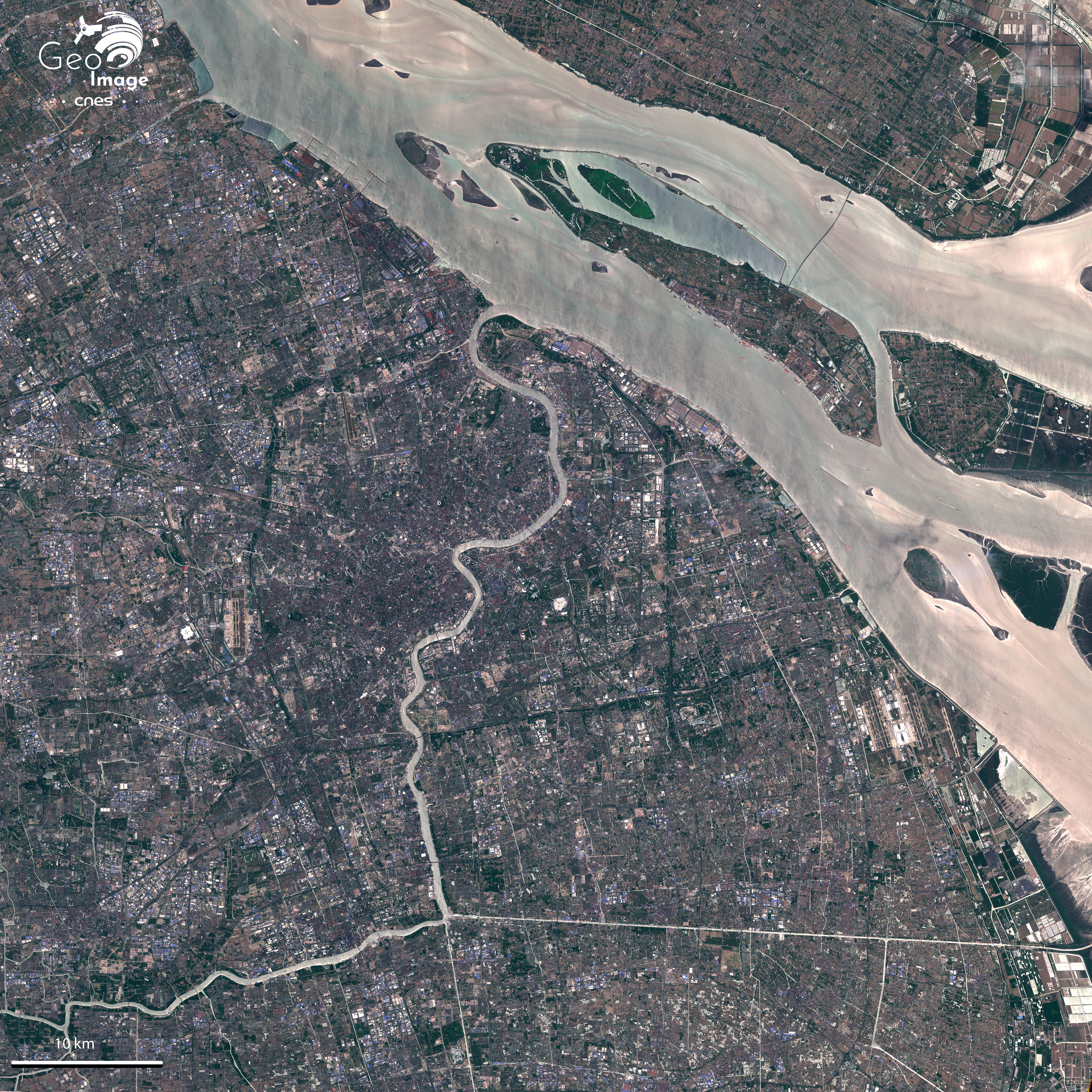 Image prise le 14 mai 2019 par le satellite Sentinel-2B de la plus grande ville de Chine, Shanghai.  Il s’agit d’une image en couleurs naturelles de résolution native à 10m.
