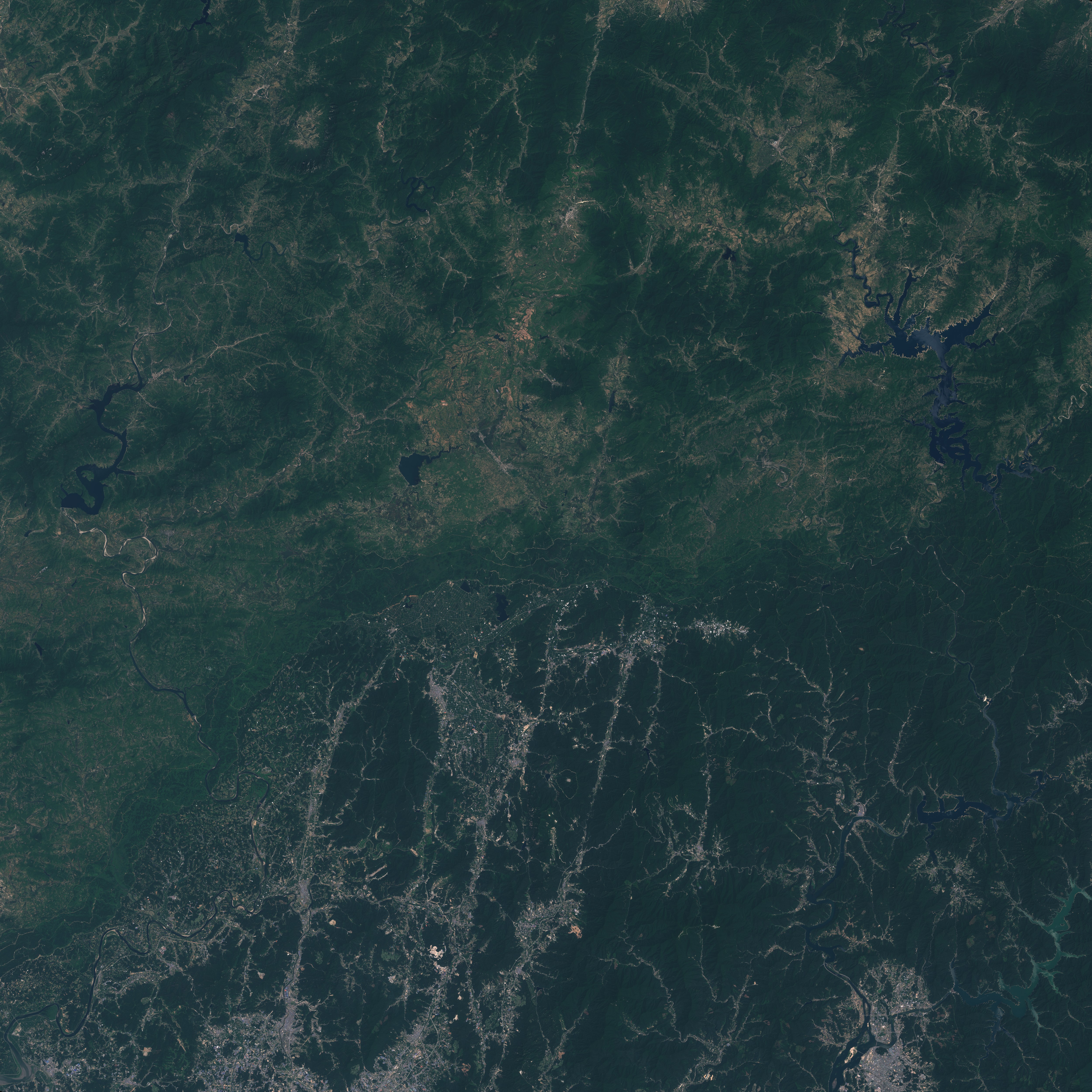 L’image couvre ici le centre géographique de la péninsule coréenne, qui est située en Asie orientale au contact entre la Chine au nord-ouest, la Russie au nord-est et le Japon au sud-est. Nous sommes ici dans un espace naturel relativement homogène composé de plateaux et de moyennes montagnes aux altitudes maximales variant de 1 109 à 1 250 m. Ils sont entrecoupés de vallées et de bassins intramontagnards relativement étroits, donnant à la topographie une structure assez confuse.