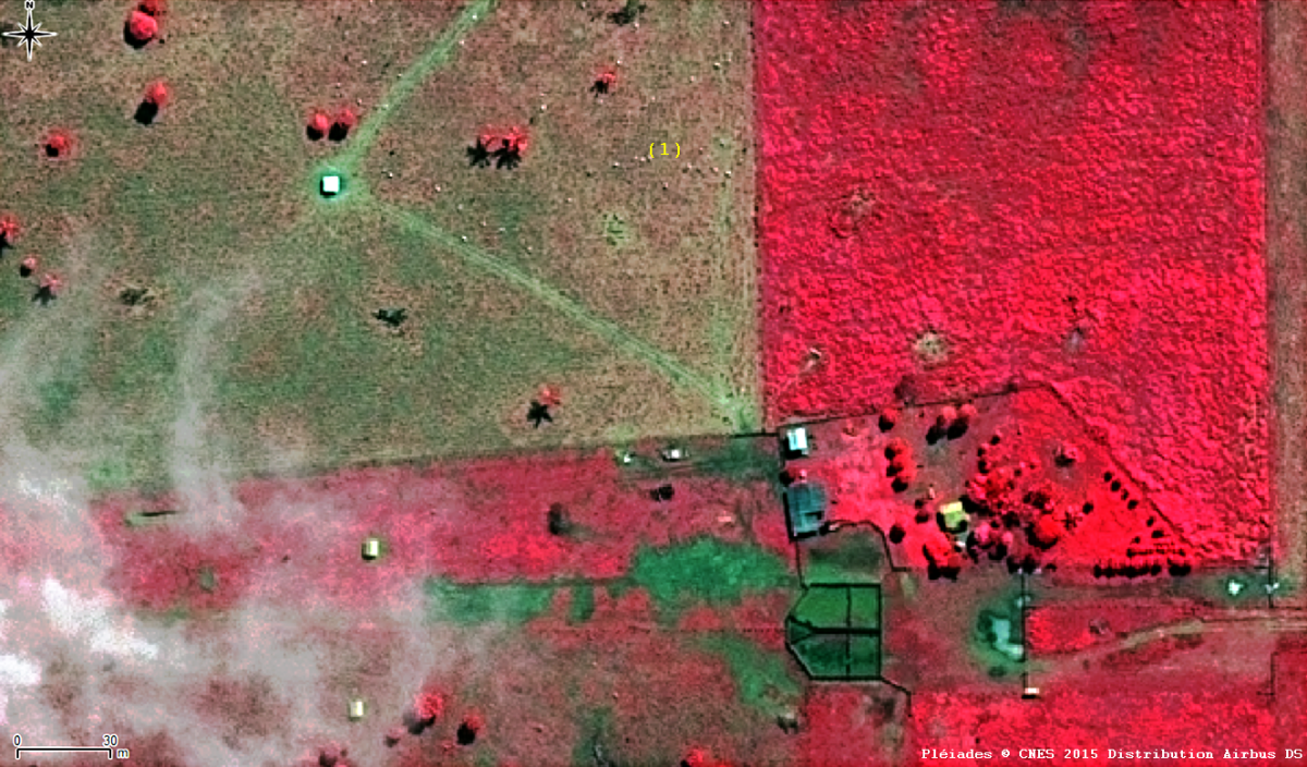 L'identification des principaux types d’occupation des sols sur l’image Pléiades de 2015 met en évidence les défrichements et un exemple d’élevage extensif de bovins.