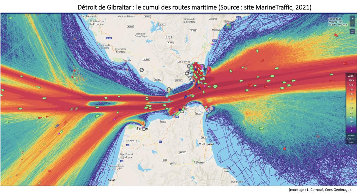 Le détroit de Gibraltar fonctionne aussi comme une interface majeure entre l’Afrique et l’Europe, les Nords et les Suds, aux gradients de développement très différenciés. Comme dans les détroits du Bosphore ou du Pas-de-Calais, les flux transversaux sont donc considérables et interfèrent avec les flux est/ouest.