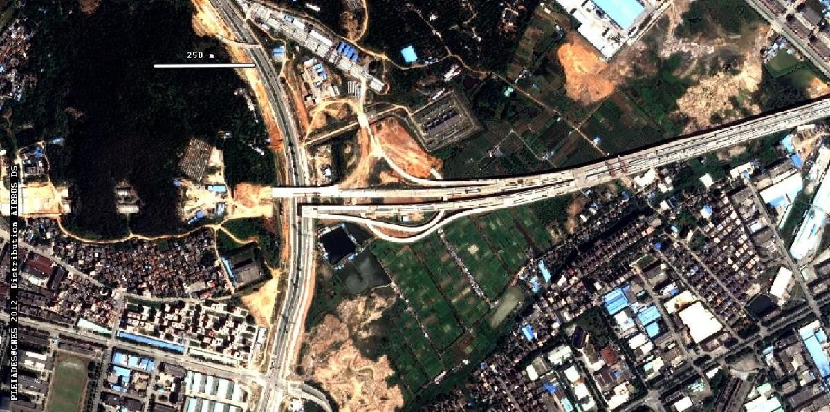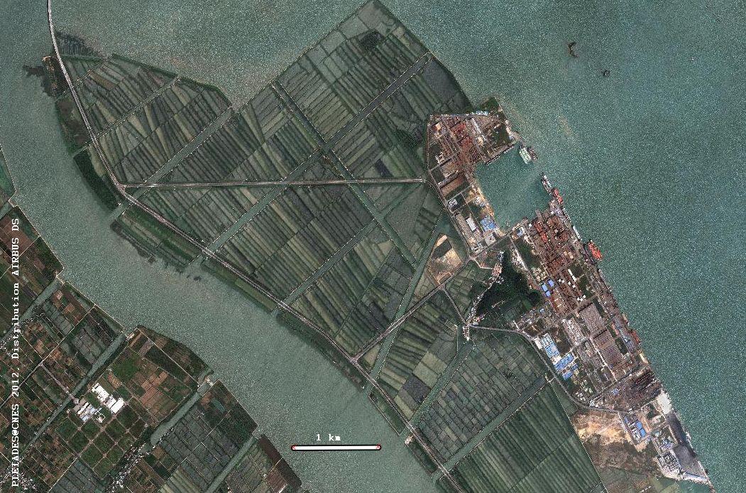 Cette image a été prise par un satellite Pléiades le 29 septembre 2012. Il s’agit d’une image de résolution native à 0,70m, ré-échantillonnée à 0,5m.