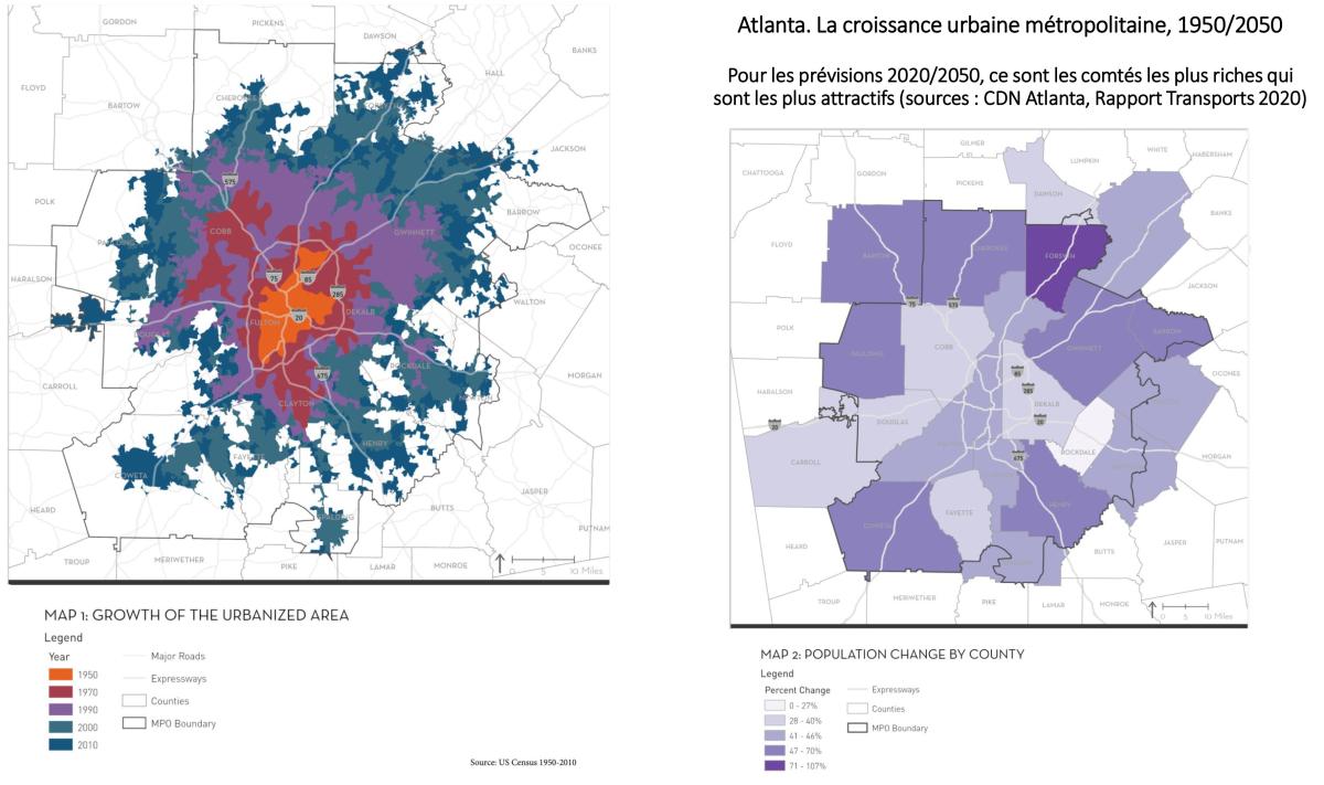 Atlanta. La croissance urbaine métropolitaine, 1950/2050 :
