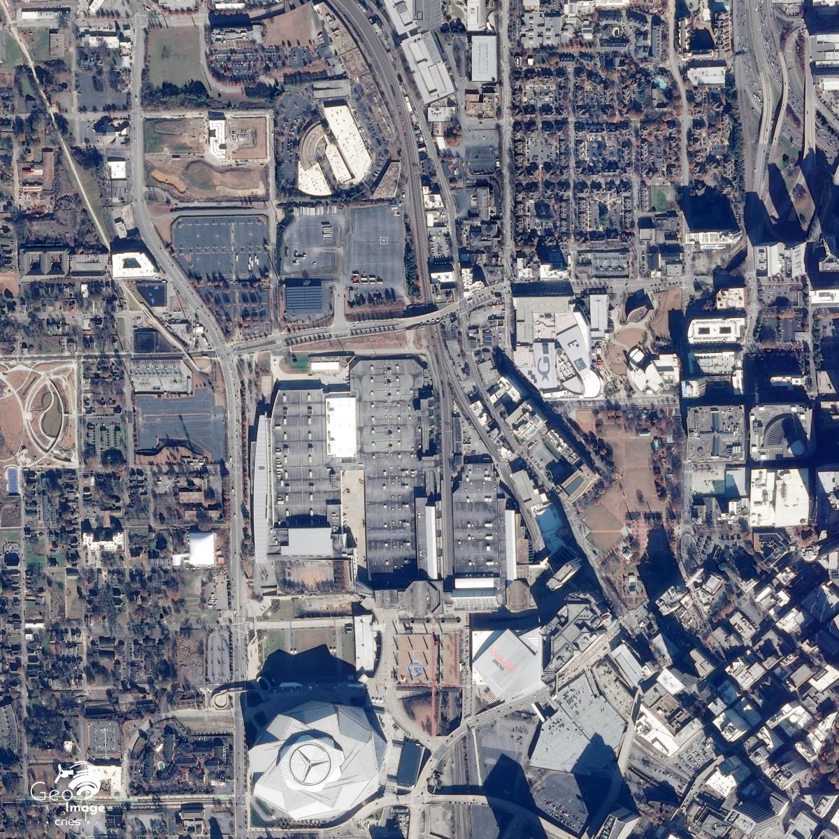 Cette image d'Atlanta, capitale de l'État de Géorgie, aux États-Unis a été prise le 1er janvier 2020 par un satellite Sentinel-2B. Il s’agit d’une image en couleurs naturelles de résolution à 10m.