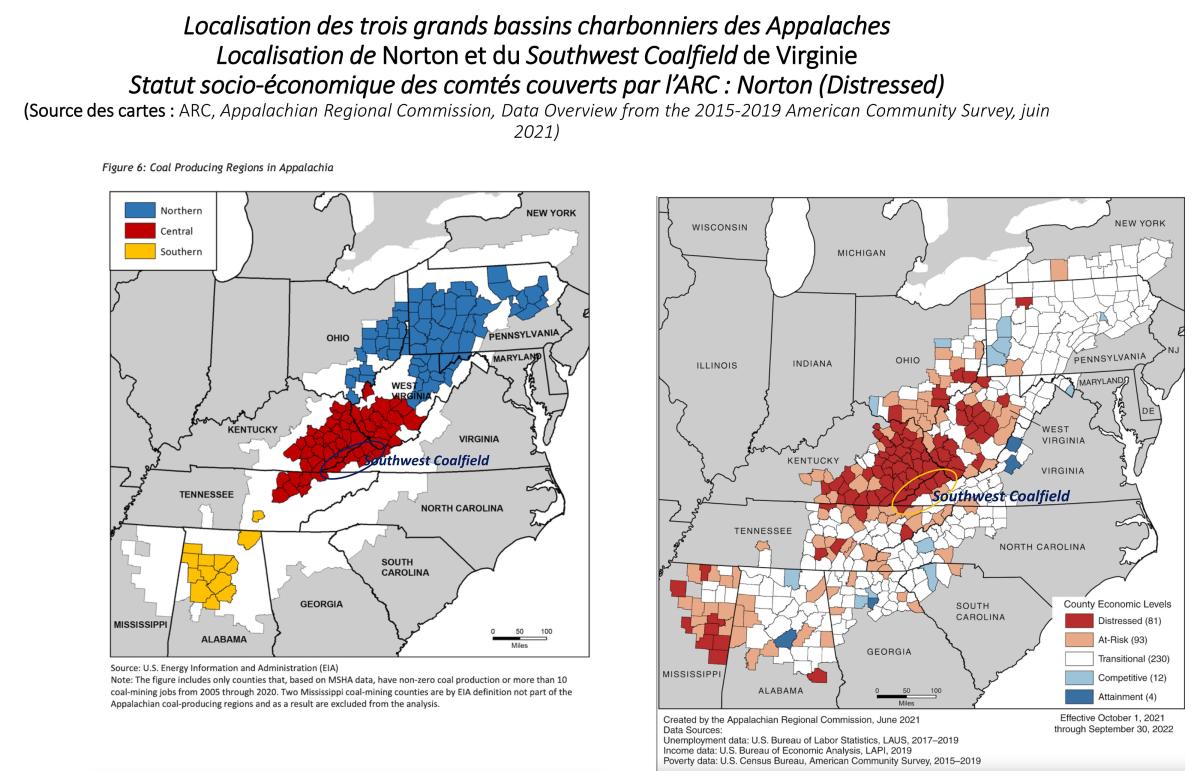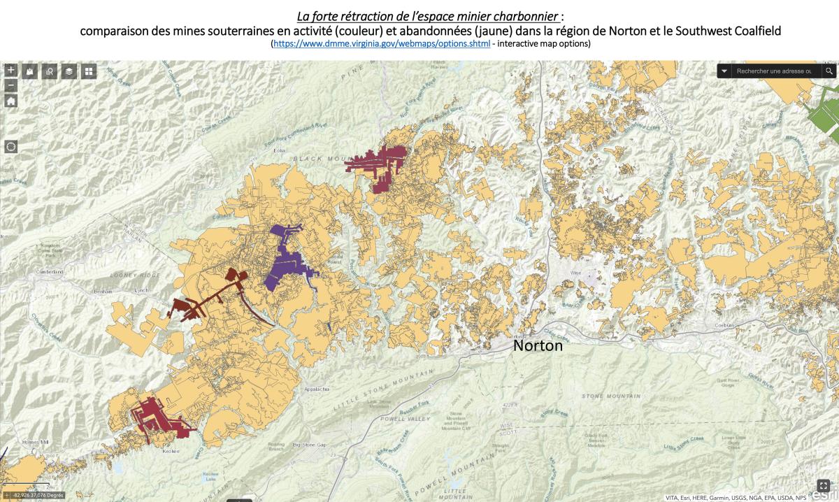 Au sud-ouest de la Virginie - dans les Allegheny Mountains au centre la grande chaîne des Appalaches - le Southwest Coalfield et la région de Norton ont connu un boom charbonnier à partir du début du XXe siècle. Dans cet espace marginal parmi les plus déshérités du pays, cette exploitation prédatrice et dévastatrice a alimenté le développement des grandes métropoles, mais s’est traduite par une crise environnementale d’une telle ampleur que l’État fédéral du intervenir en 1977. La concurrence frontale du charbon à ciel ouvert des Rocheuses, l’essor foudroyant du gaz de schiste par fracturation hydraulique et enfin l’indispensable réduction des émissions de gaz à effet de serre afin de lutter contre le réchauffement climatique ont débouché sur un déclin majeur et une crise socio-économique très profonde.