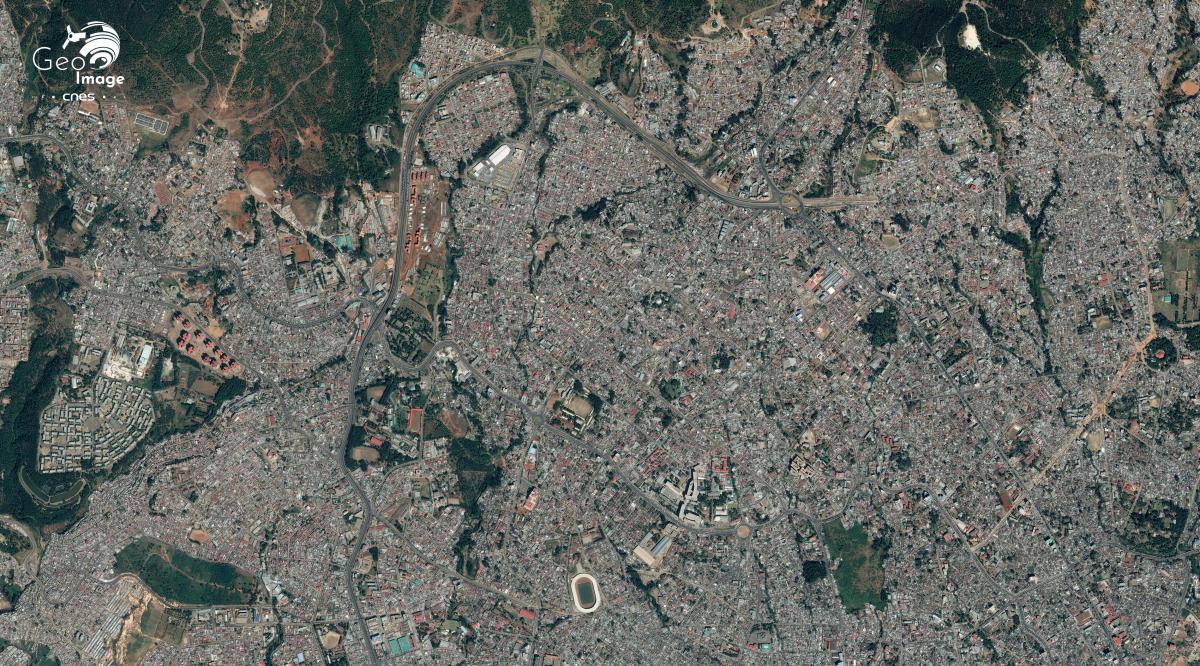 Cette image de la capitale de l’Éthiopie, Addis Abeba, a été prise par le satellite Sentinel-2B le 4 mai 2019. Il s’agit d’une image en couleurs naturelles, de résolution native à 10 m.