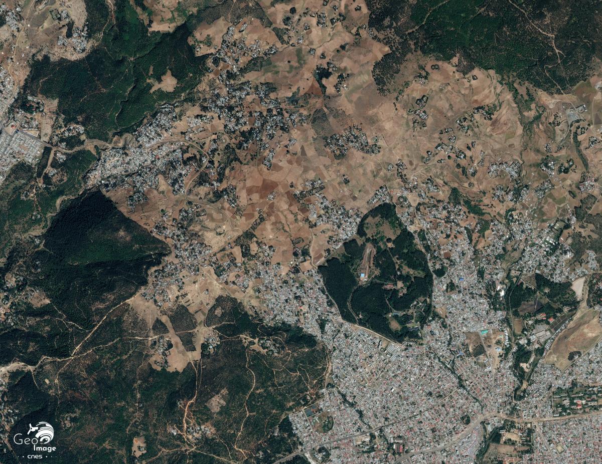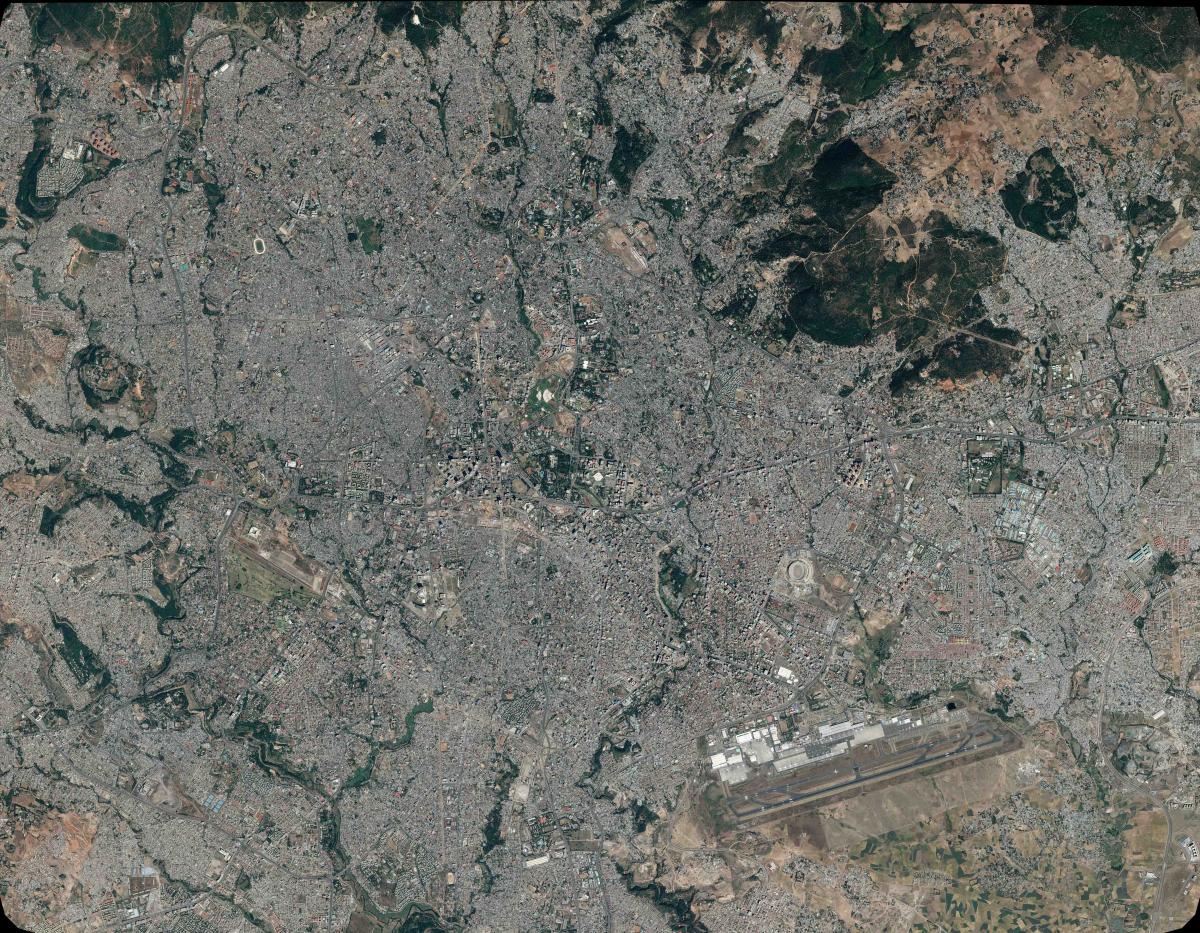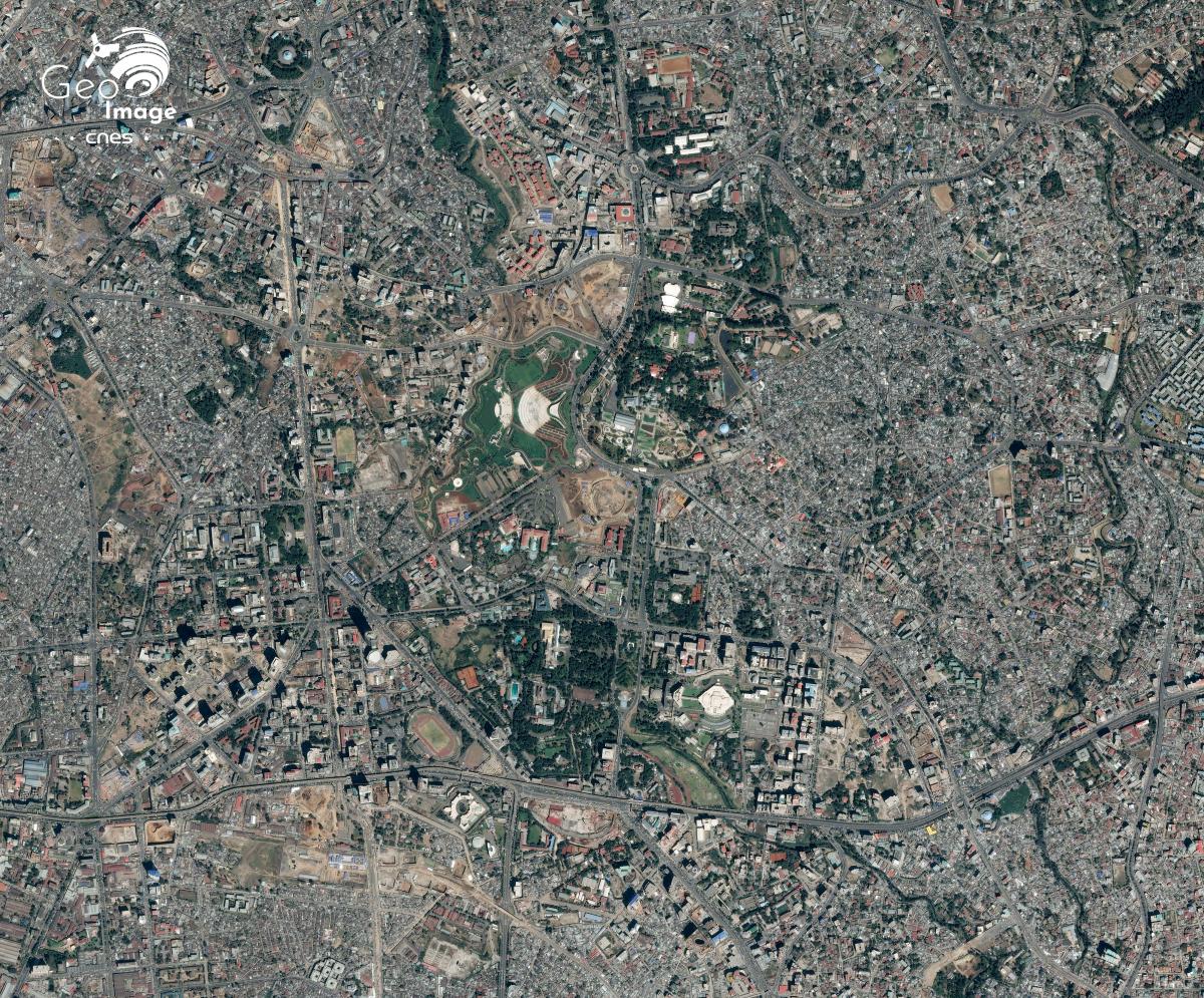 Cette image couvre une partie du district de Yeka qui recoupe le Nord-Est de la ville. Cou-vrant 85,5 km2, il est peuplé de 337 500 habitants, soit une densité de 3 950 hab./km2. Elle témoigne de l’avancée du front urbain qui gagne progressivement tout l’espace rural et agri-cole par mitage progressif des terroirs de Beg Tera ou Yeka.