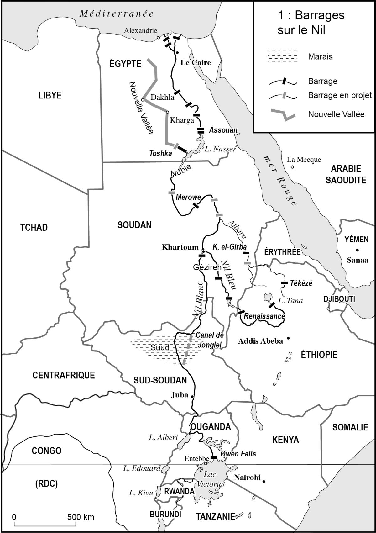 Alors que le bassin du Nil est déjà équipé de barrages importants (cf. Barrage de la Renaissance, de Roseires, de Sennar et celui de Khartoum, de Merowe, d’Assouan...) et que de nombreux projets sont à l’avenir possibles, on assiste à la montée de fortes tensions géopolitiques, en particulier entre l’Éthiopie, le Soudan et l’Égypte, concernant la question du partage des eaux dans un vaste bassin transfrontalier pour partie désertique dont la gestion commune est hypothéquée par des rivalités de puissances et des conflits de légitimité et de souveraineté.