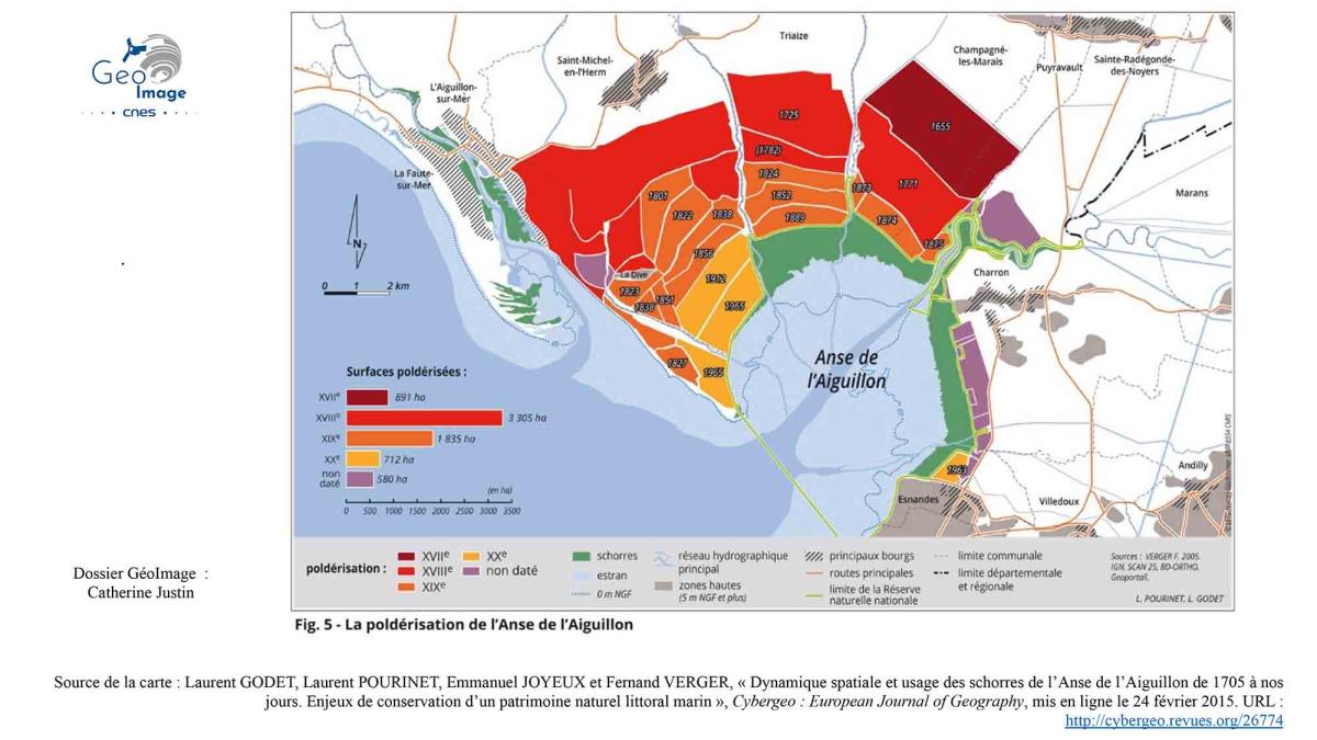 - Godet, Laurent, Pourinet, Laurent, Joyeux, Emmanuel & Verger, Fernand (2015), « Dynamique spatiale et usage des schorres de l’Anse de l’Aiguillon de 1705 à nos jours. Enjeux de conservation d’un patrimoine naturel littoral marin », Cybergeo : European Journal of Geography, mis en ligne le 24 février 2015