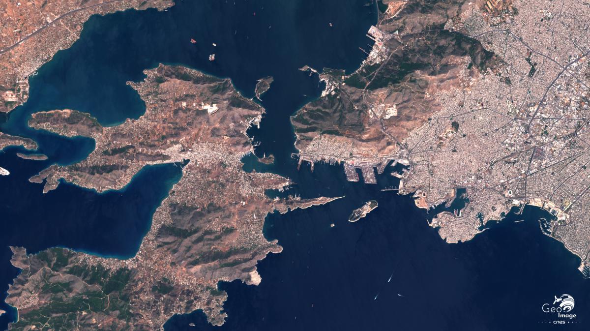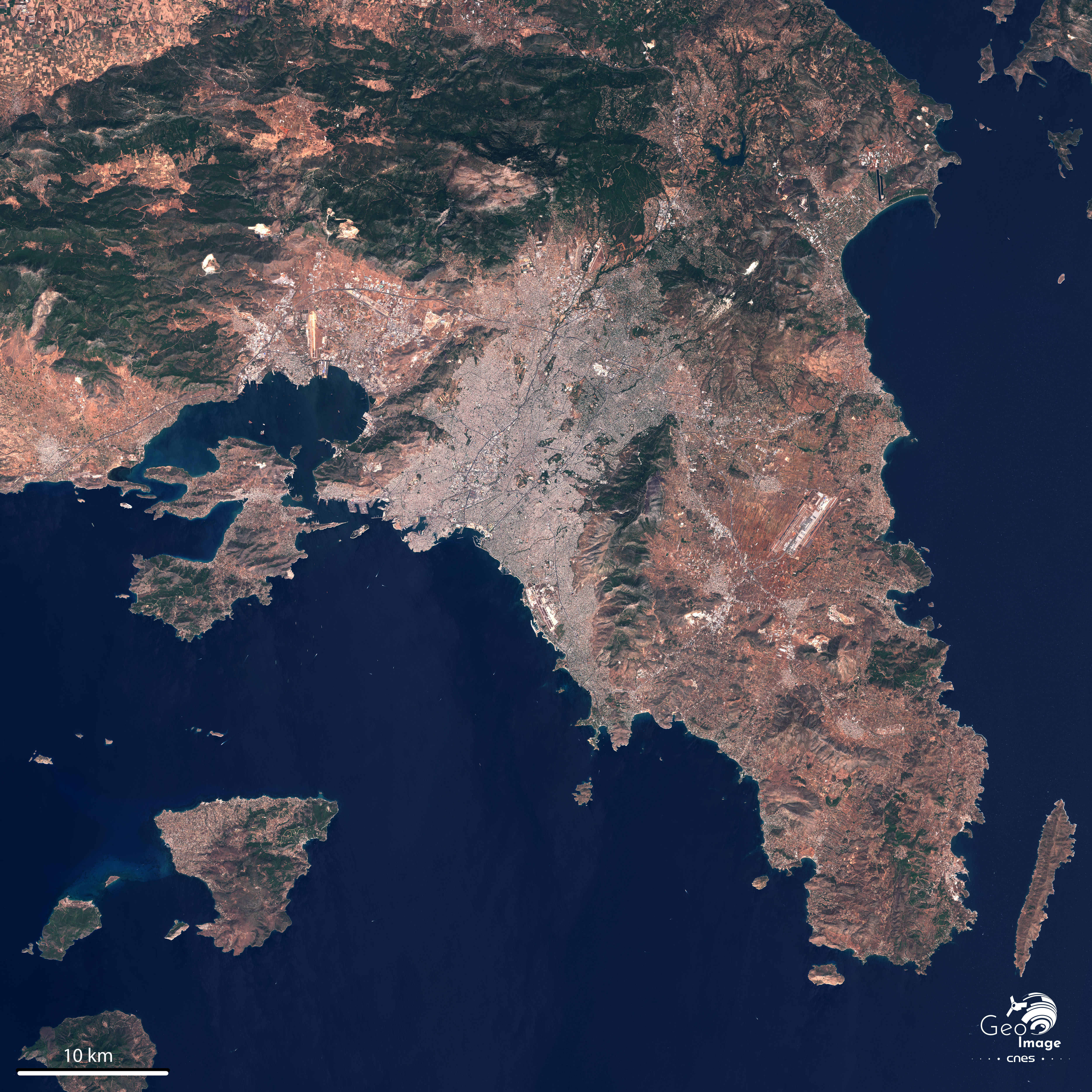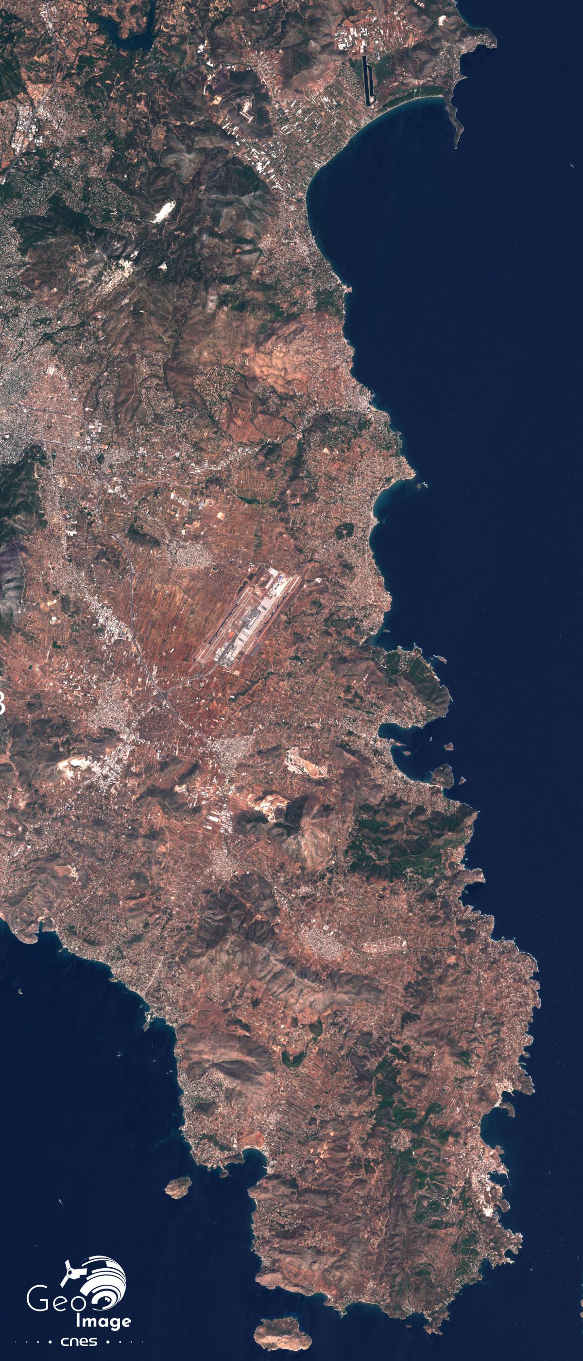 L'image du centre d'Athènes, présentée ci-contre a été prise par un satellite Pleiades le 6 mars 2018. Il s’agit d’une image en couleur naturelle, de résolution native à 0,70m, ré-échantillonnée à 0,5m.