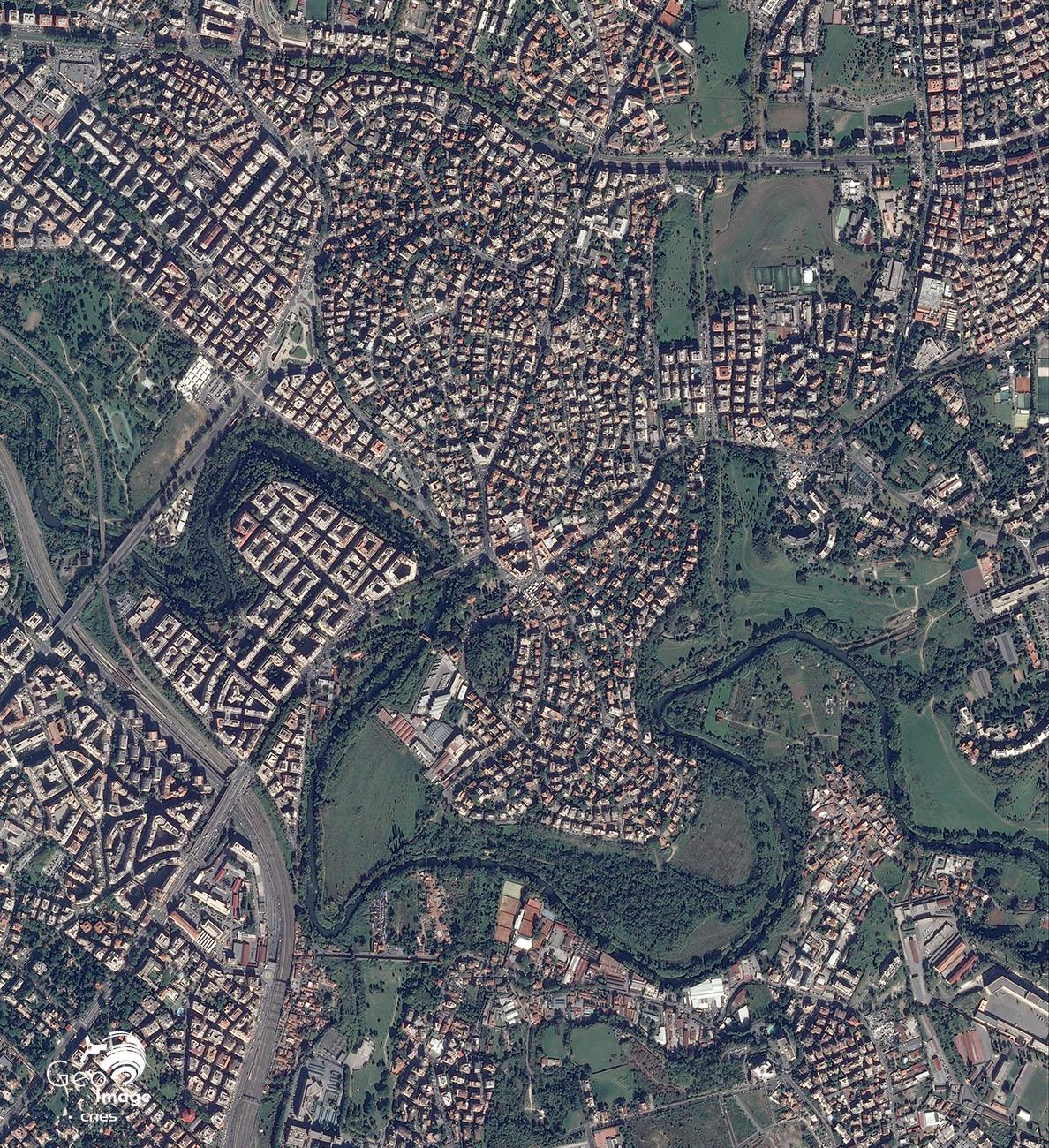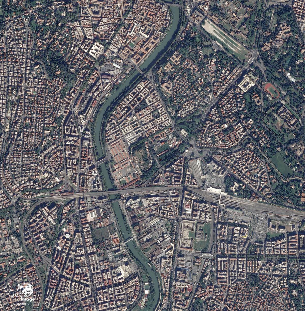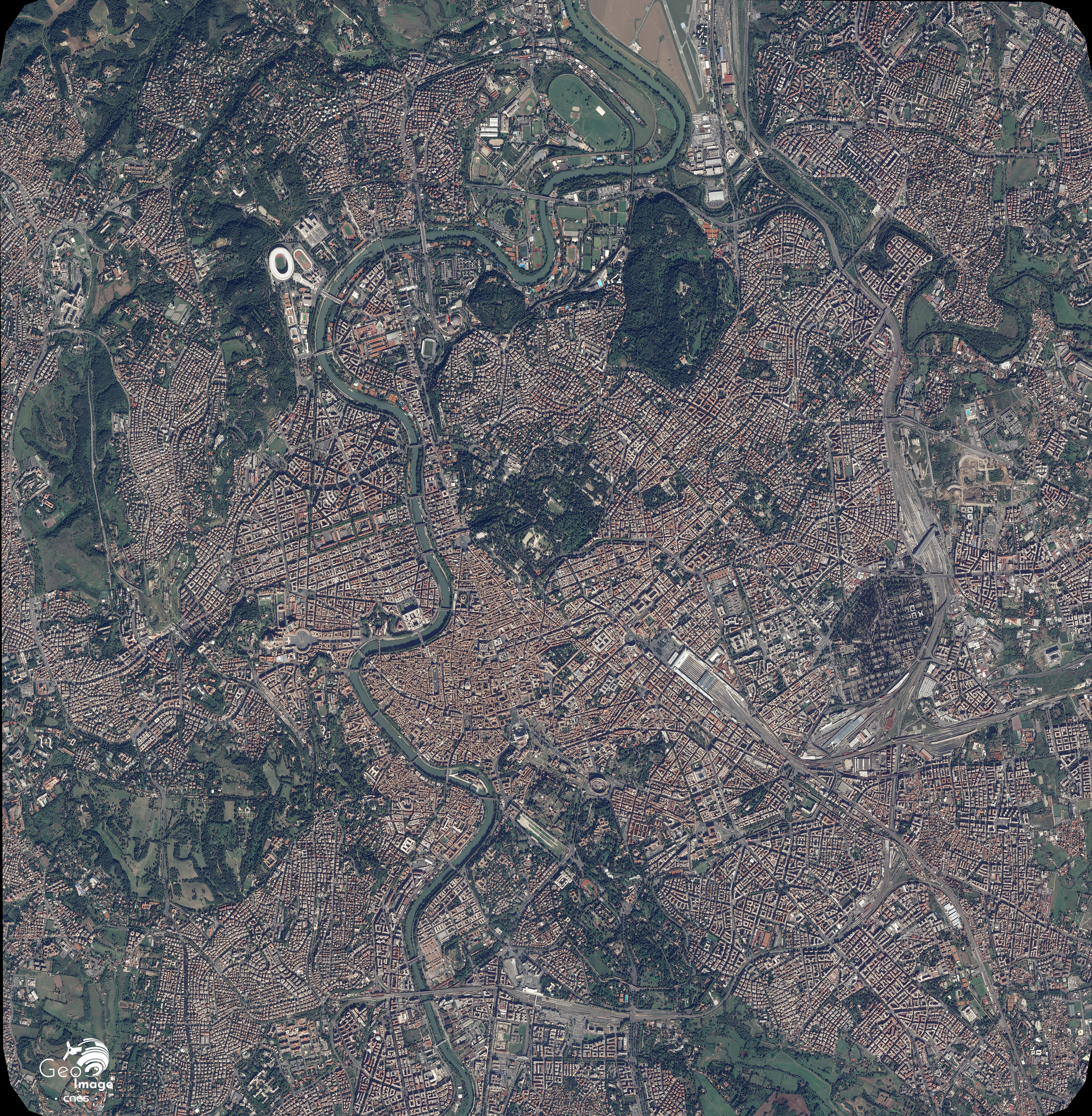 Cette image de Rome, capitale de l'Italie, a été prise par un satellite Pléiades le 18 octobre 2019. Il s’agit d’une image en couleur naturelle, de résolution native à 0,70m, ré-échantillonnée à 0,5m.