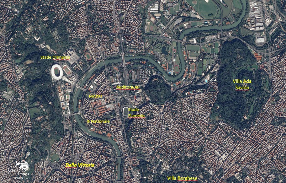 L’image satellite témoigne de quelques velléités de contrôle de l’expansion immobilière, ainsi le plan régulateur de 1909 prévoyait six quartiers résidentiels autour de places, qui furent bien réalisés (par ex. Flaminio et Mazzini au Nord)… Mais les espaces verts qui devaient les séparer n’ont pas résisté à la pression spéculative.