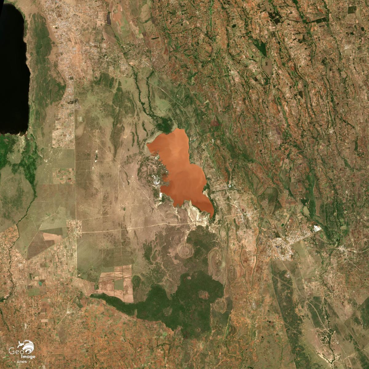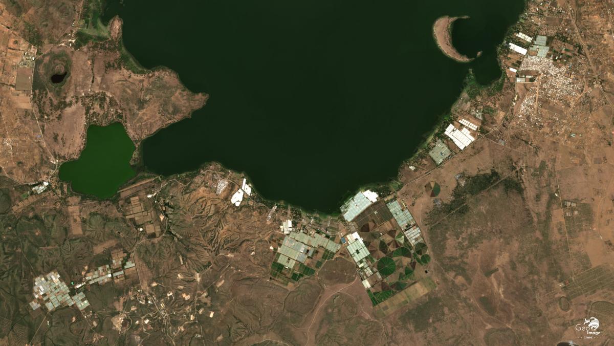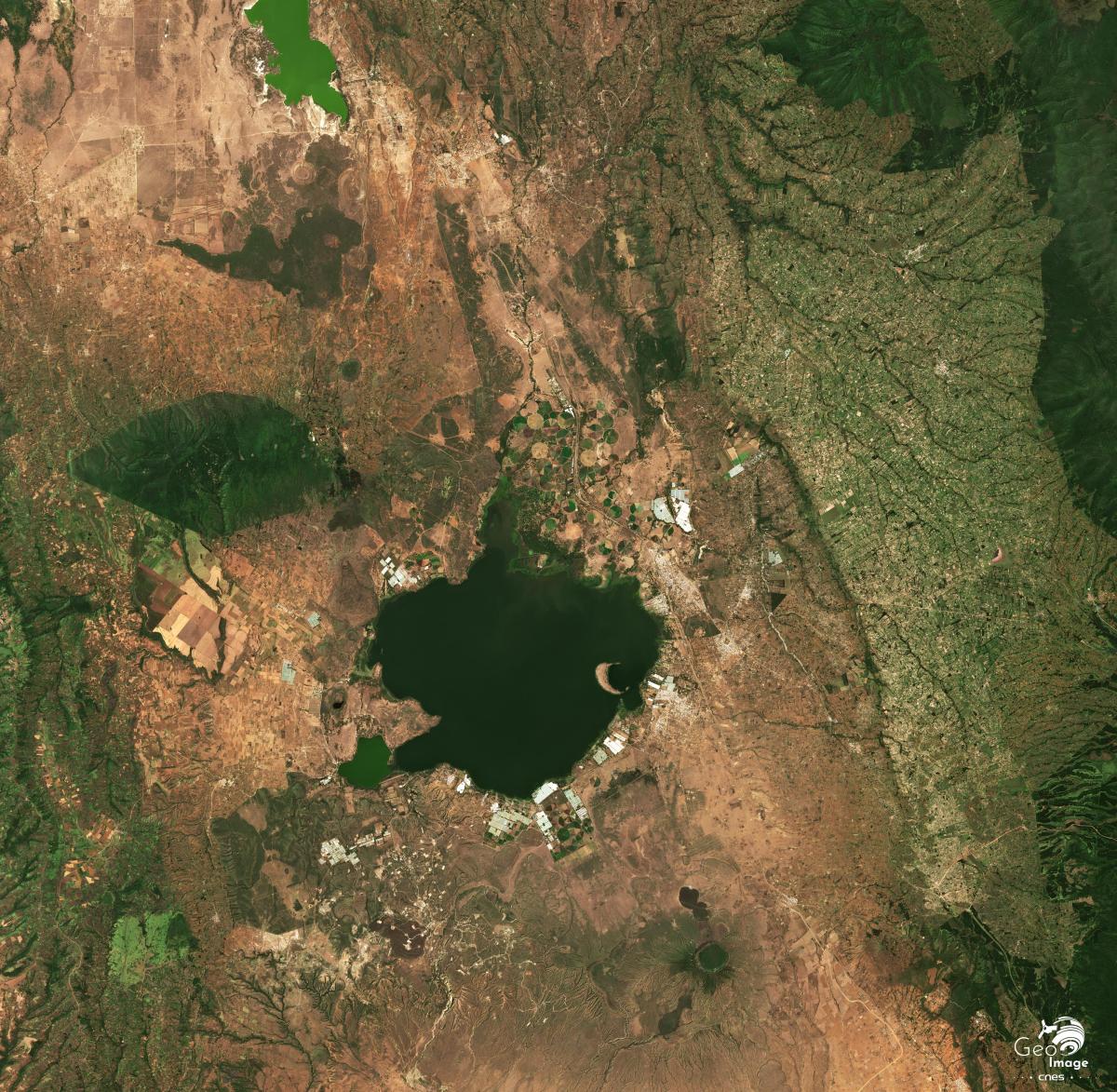 Cette image du lac Naivasha, dans la vallée du Grand Rift au Kenya, a été prise par le satellite Sentinel-2A le 27 février 2021. Il s'agit d'une image en couleur naturelle et la résolution est de 10m.