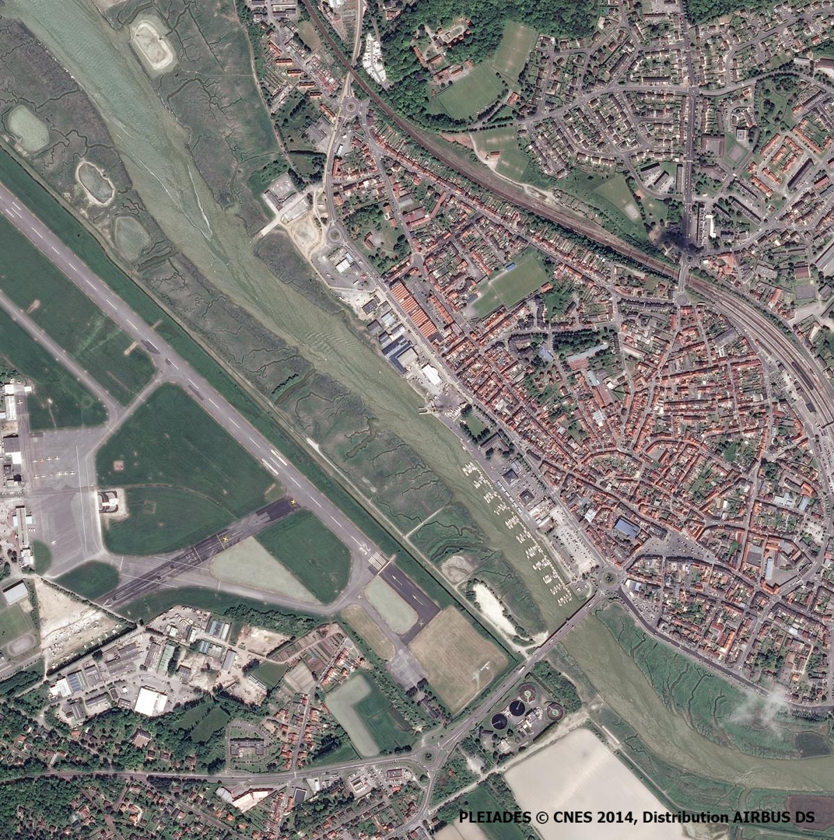 Cette image a été prise par un satellite Pléiades le 03/02/2012. Il s’agit d’une image en couleurs naturelles, de résolution native à 0,70m, ré-échantillonnée à 0,5m.