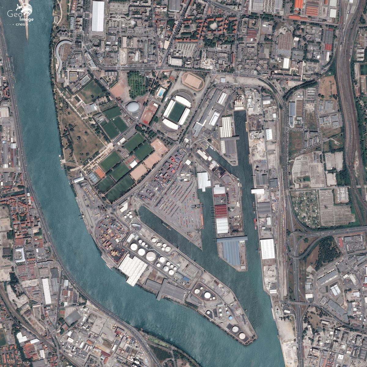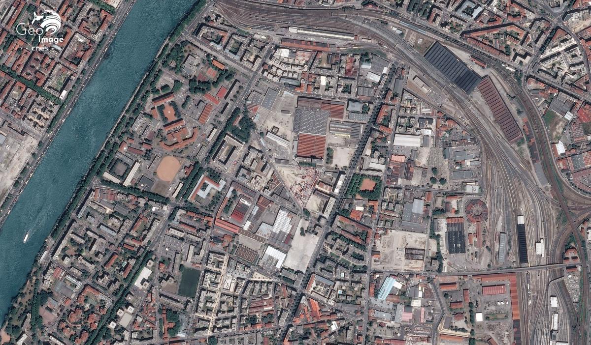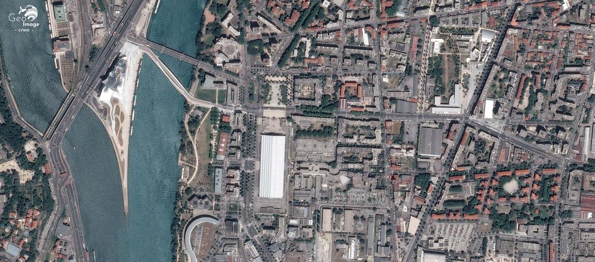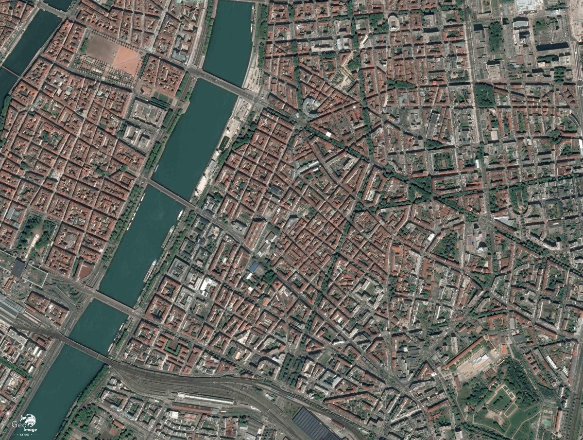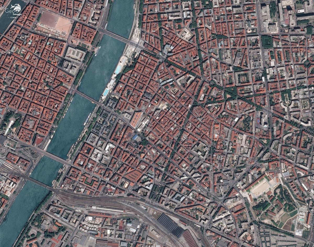 Cette image de l'agglomération lyonnaise a été prise par un satellite Pléiades le 01/07/2015. Il s’agit d’une image en couleurs naturelles, de résolution native à 0,70m, ré-échantillonnée à 0,5m.