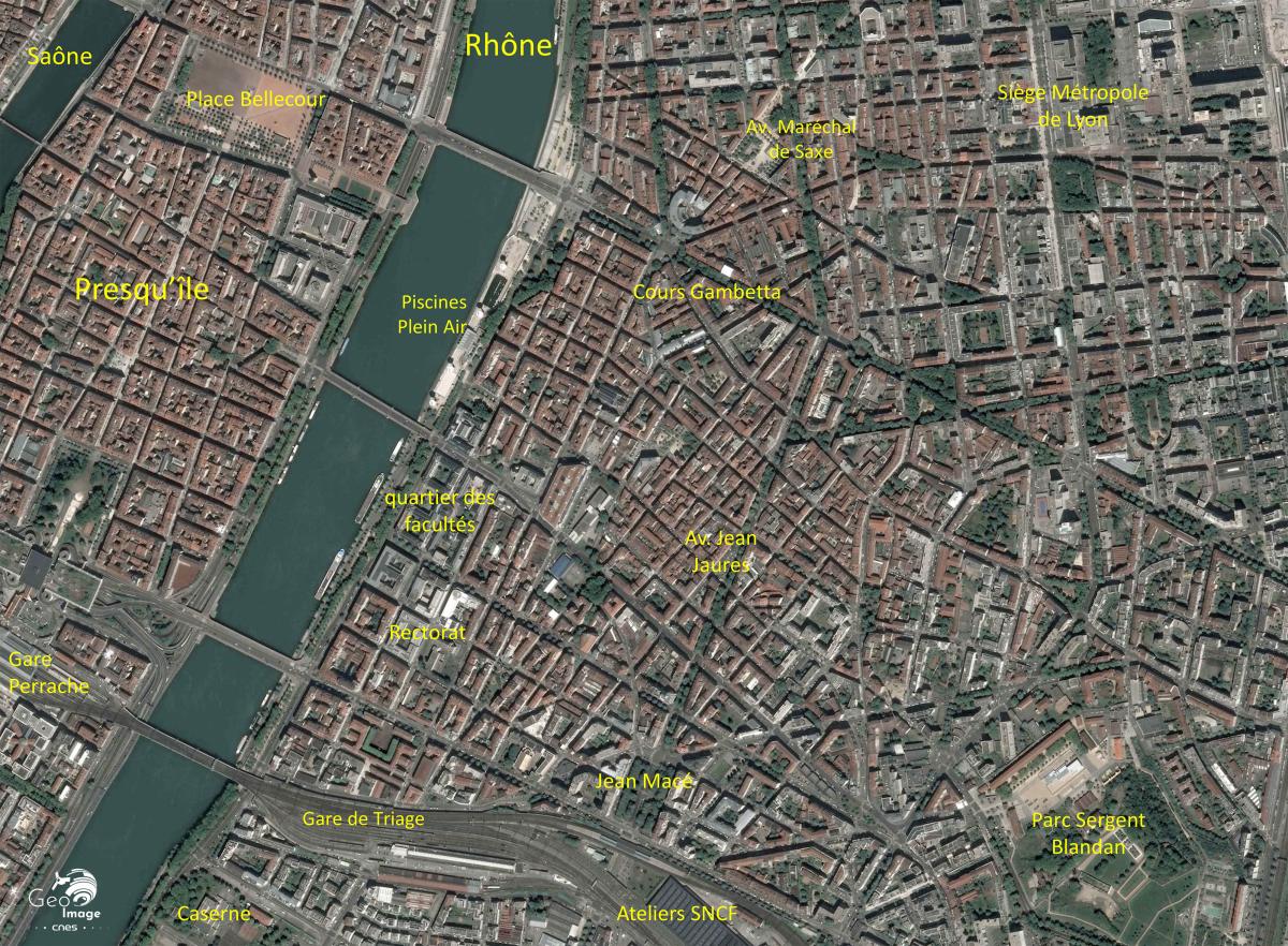 image satellite de l'agglomération lyonnaise