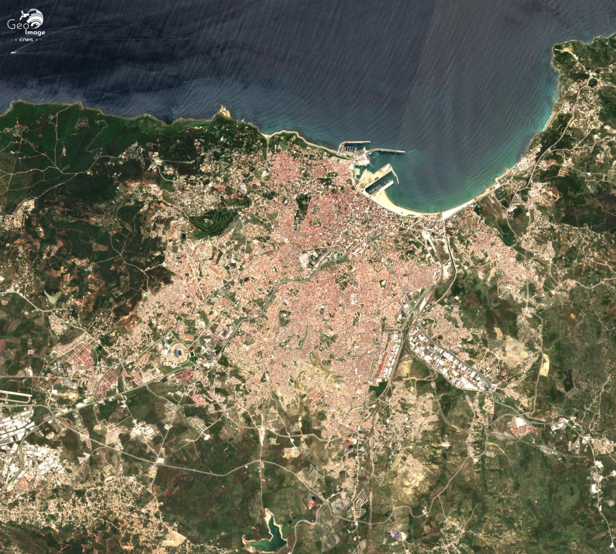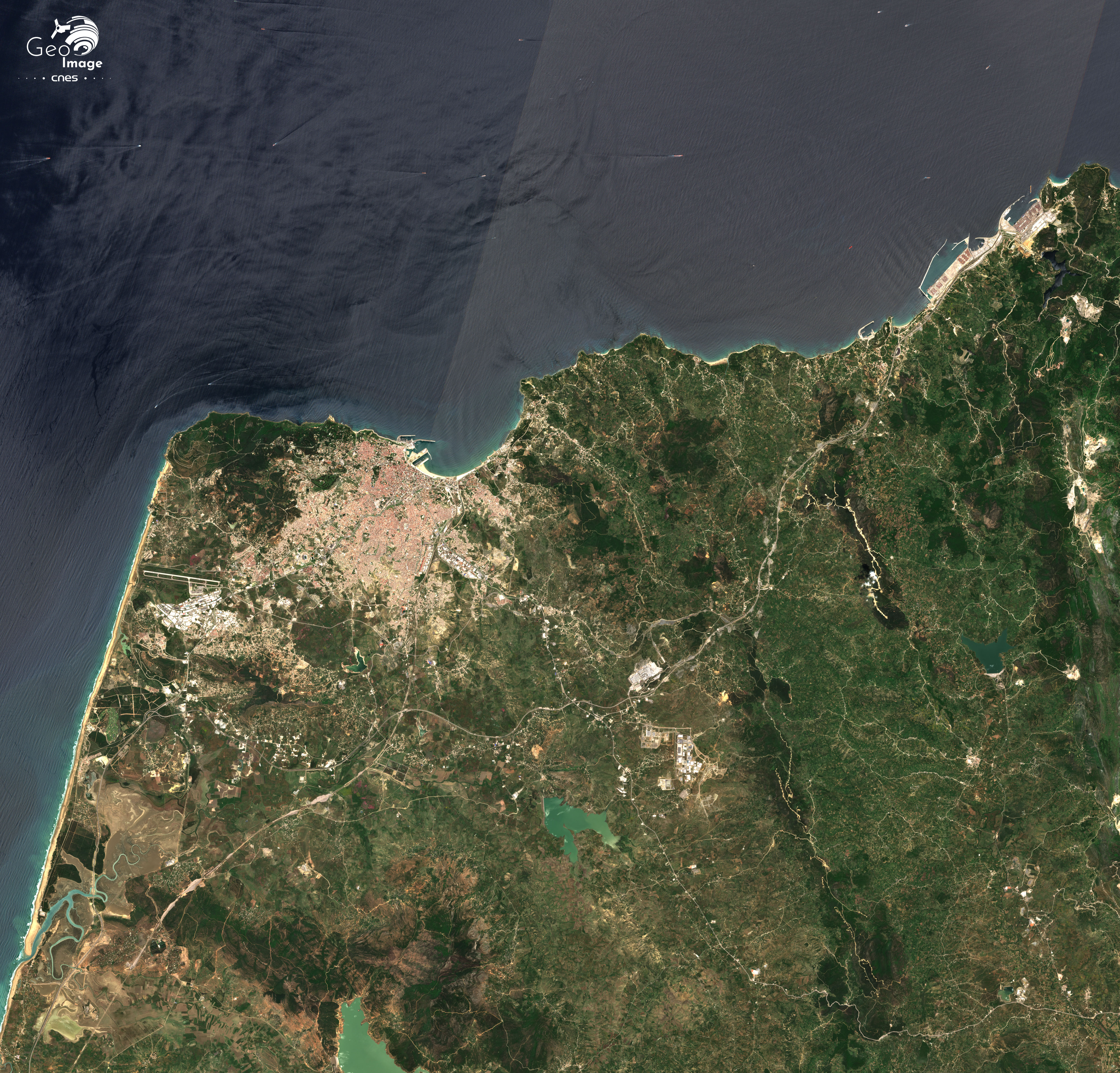 Cette image de Tanger, port marocain situé dans le détroit de Gibraltar, a été prise par le satellite Sentinel-2B le 6 mai 2021. Il s’agit d’une image en couleurs naturelles de résolution native à 10m.